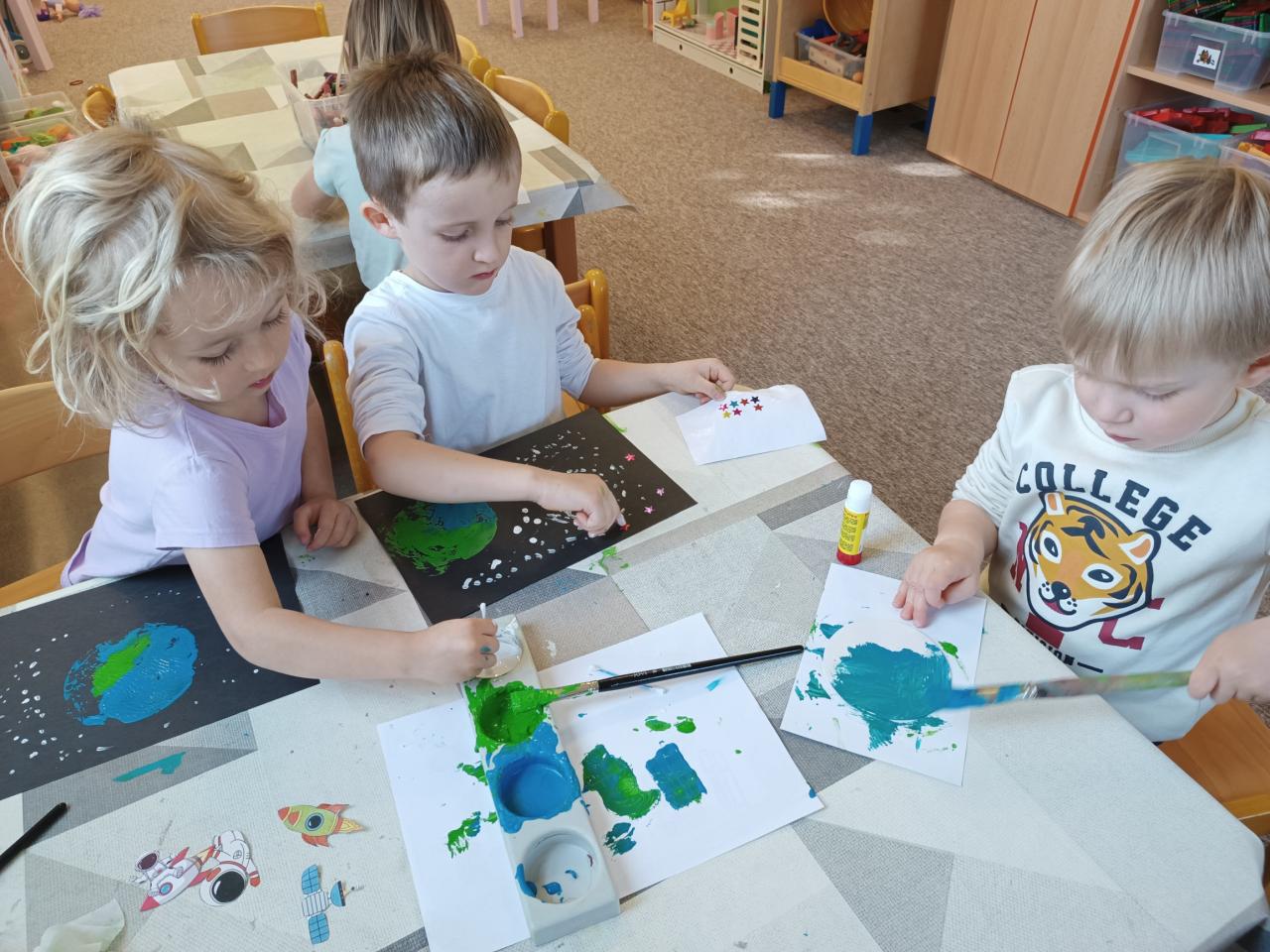 Tento týden oslavila naše planeta svátek a Broučkové slavili s ní. Nejdříve jsme se vydali hledat Zemi do vesmíru a následně ji výtvarně ztvárnili. Povídali jsme si o tom, jak se o ní máme starat a jak se správně chovat při pobytu venku. Broučkové už moc dobře ví, že se odpadky do přírody nevyhazují, ale že je můžeme odnášet do barevných popelnic. Ukázali jsme si také, že z některých odpadků (pet víček) můžeme vyrobit i krásné kytičky na plot. Ty živé kytičky jsme využili při tvoření zeměkoule a přírodních náramků.