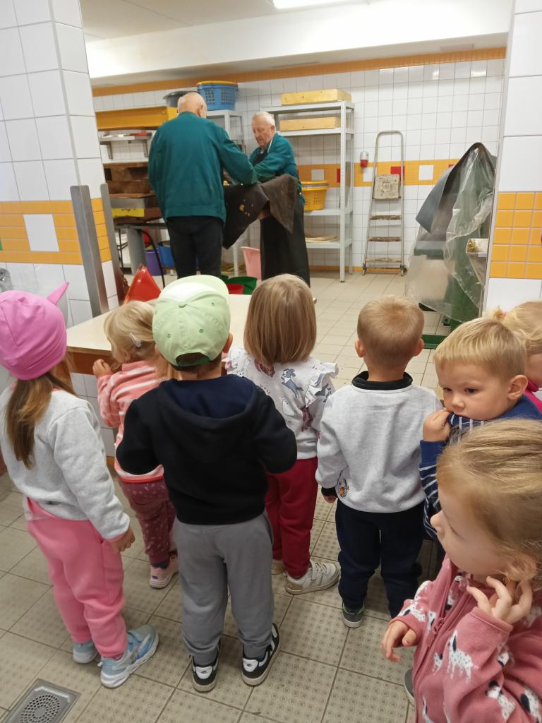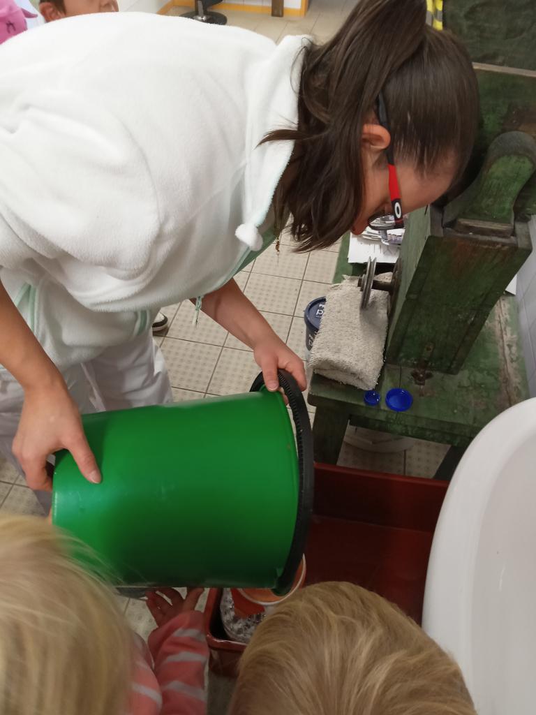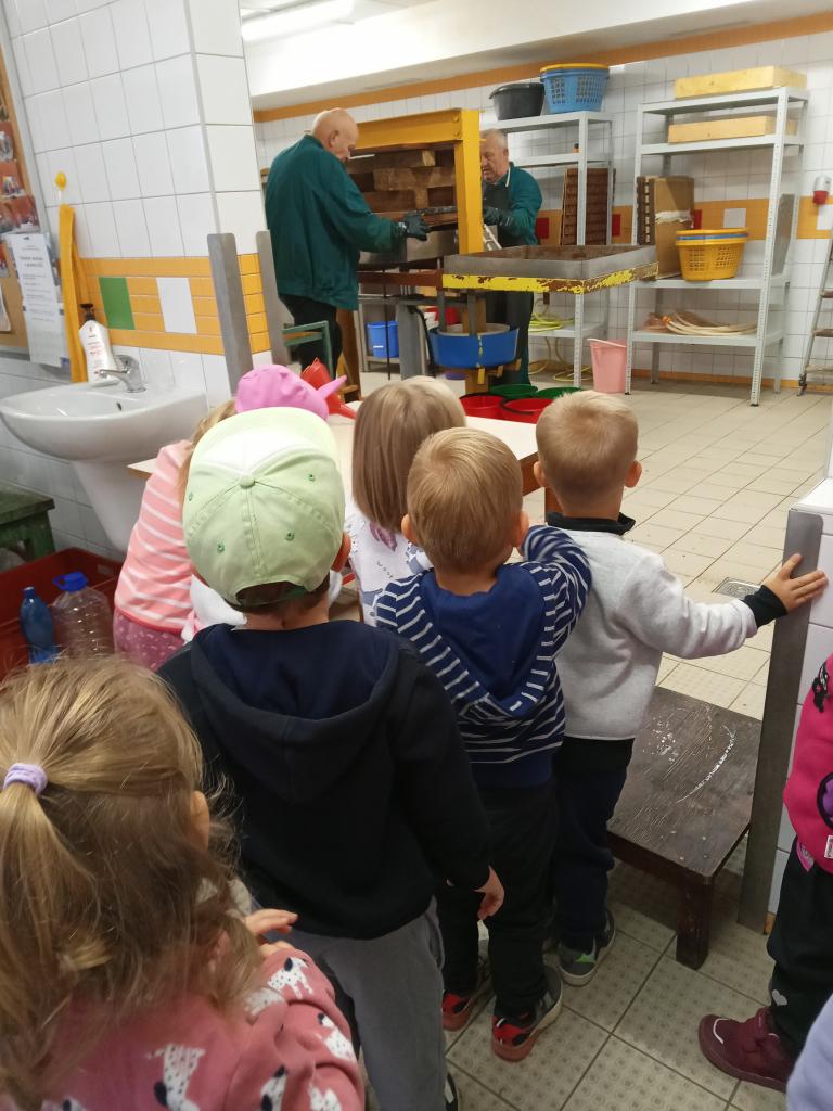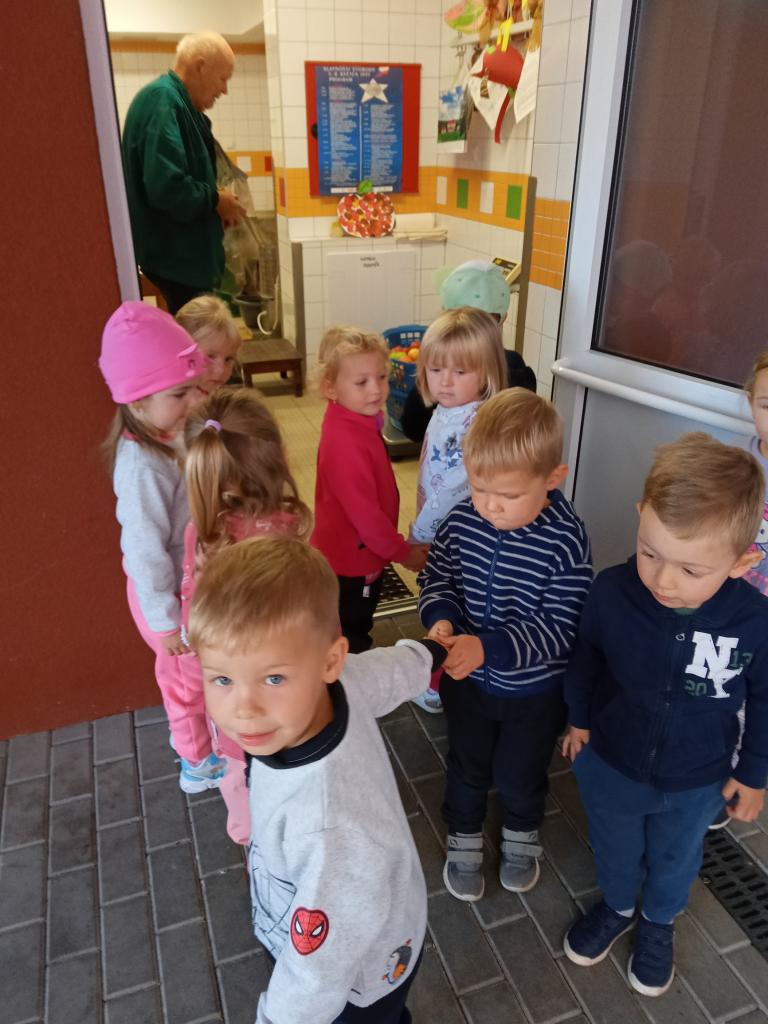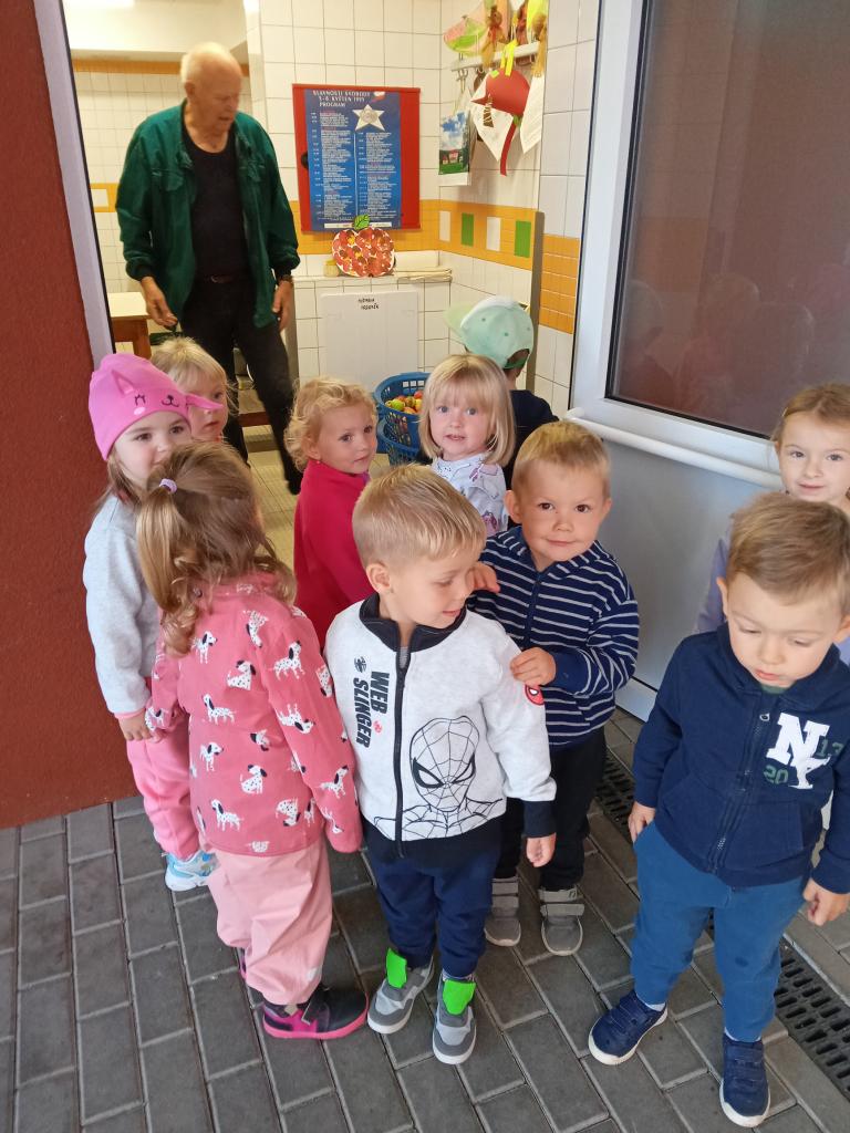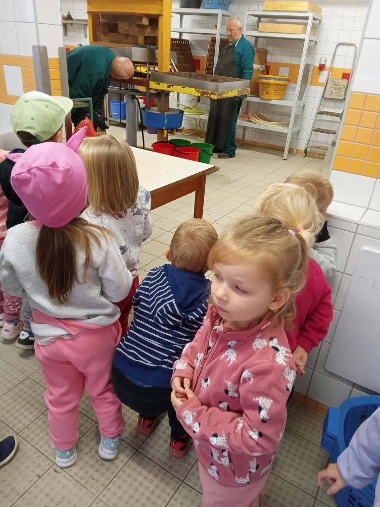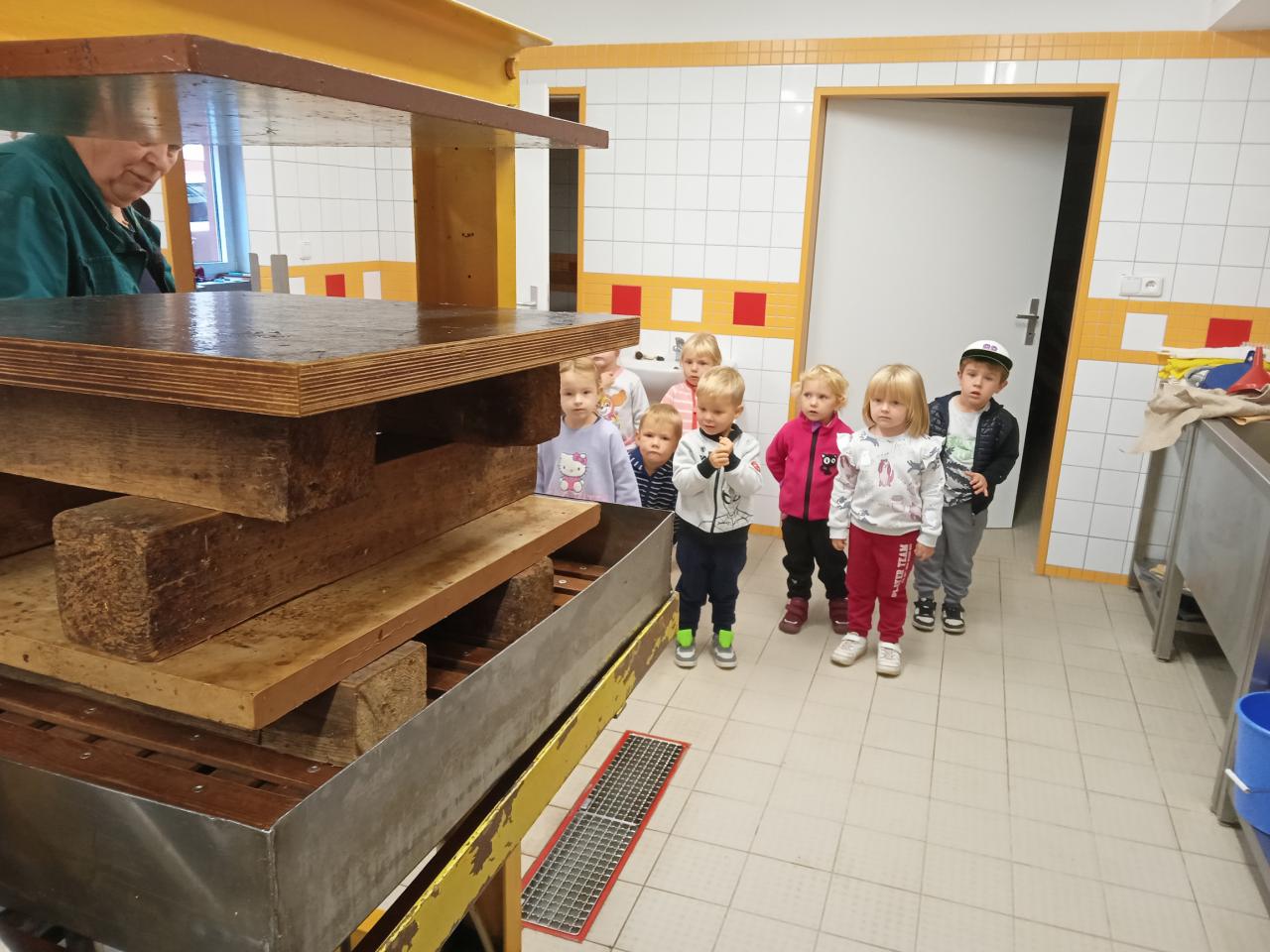 Broučci s "náhradní" paní učitelkou Simčou od včeliček a za vydatné pomoci paní uklízečky, tety Petry, prozkoumali dýšinskou moštárnu a seznámili se s celým procesem s výsledným ochutnáváním sladkého moštu.
