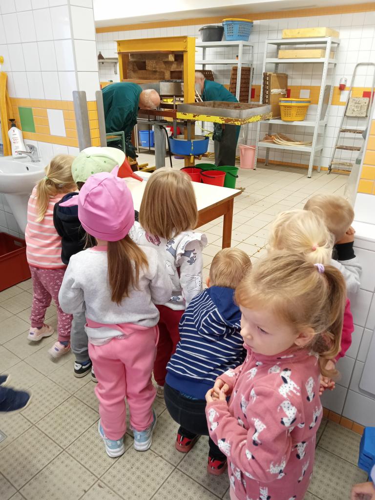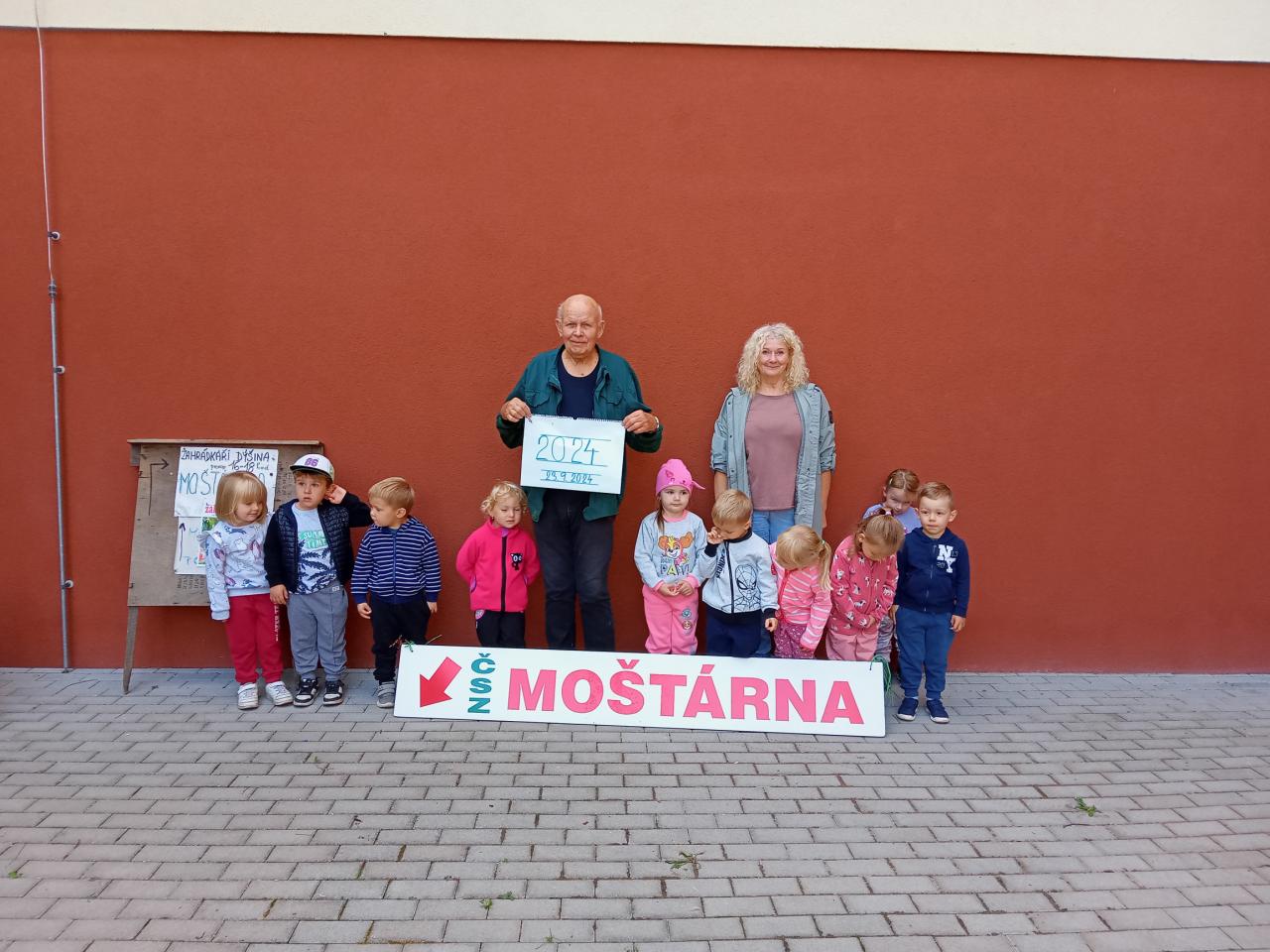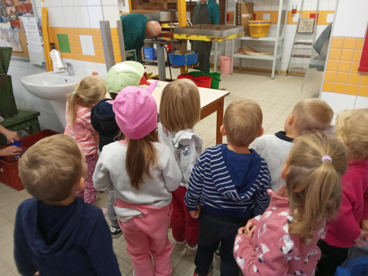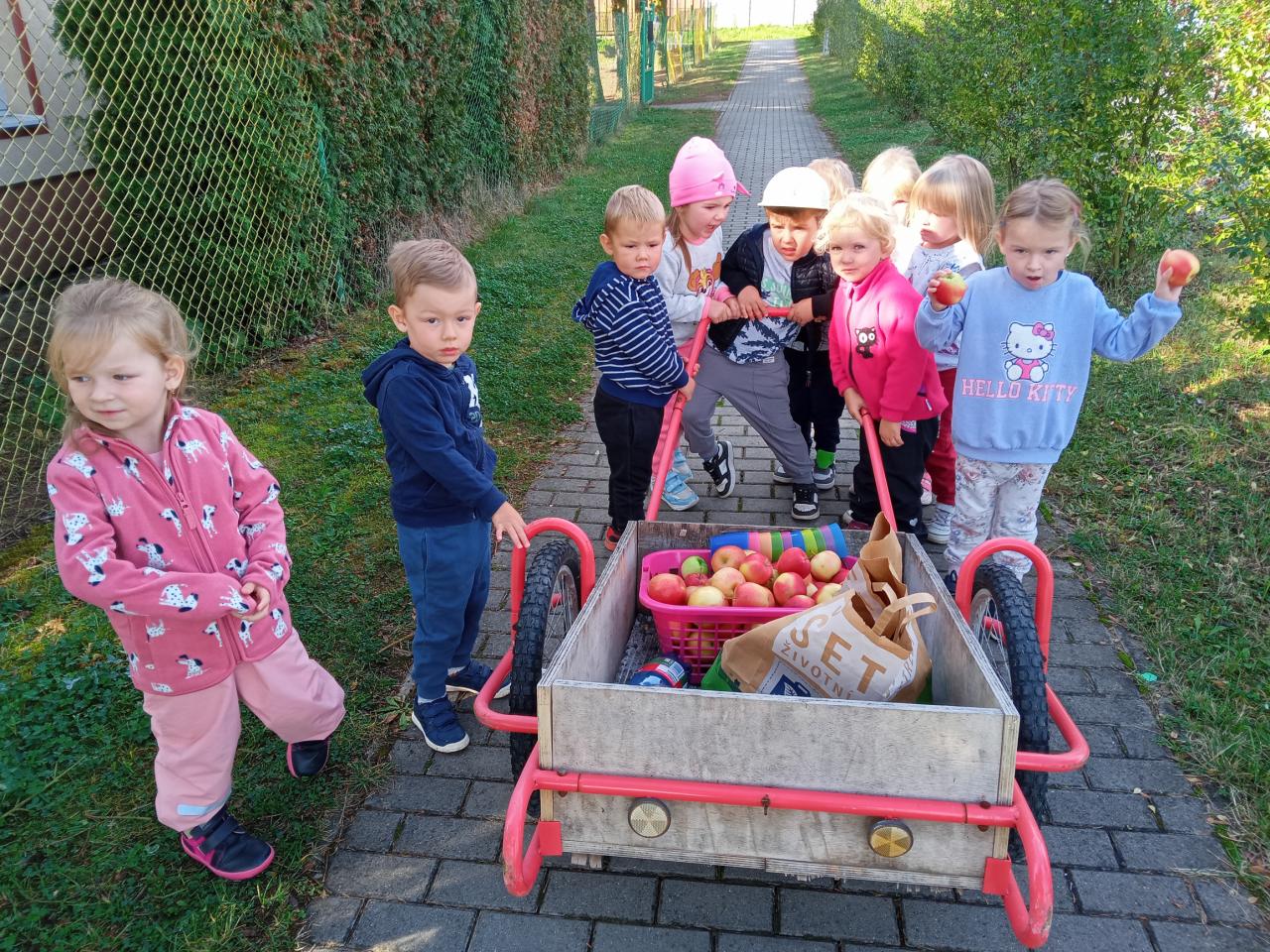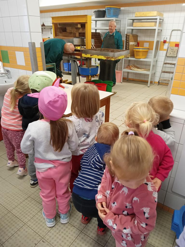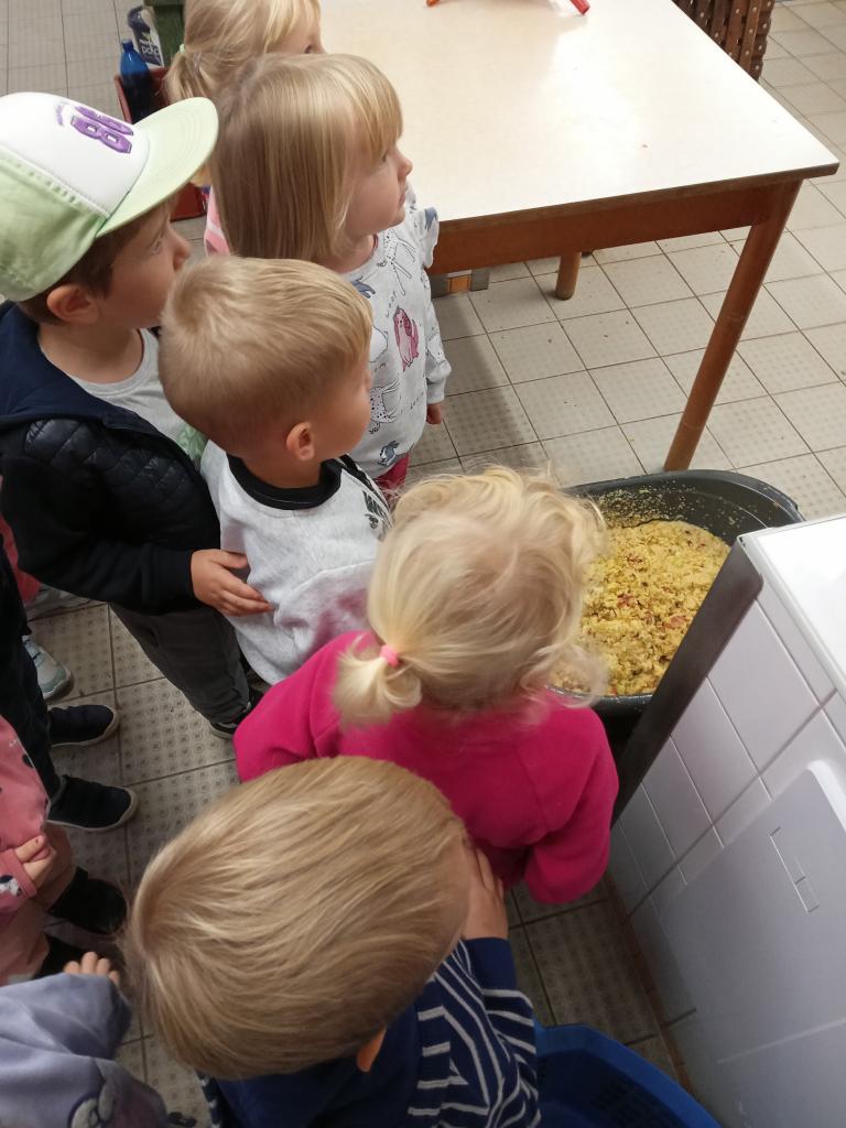 Broučci s "náhradní" paní učitelkou Simčou od včeliček a za vydatné pomoci paní uklízečky, tety Petry, prozkoumali dýšinskou moštárnu a seznámili se s celým procesem s výsledným ochutnáváním sladkého moštu.