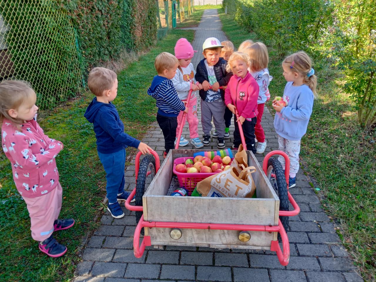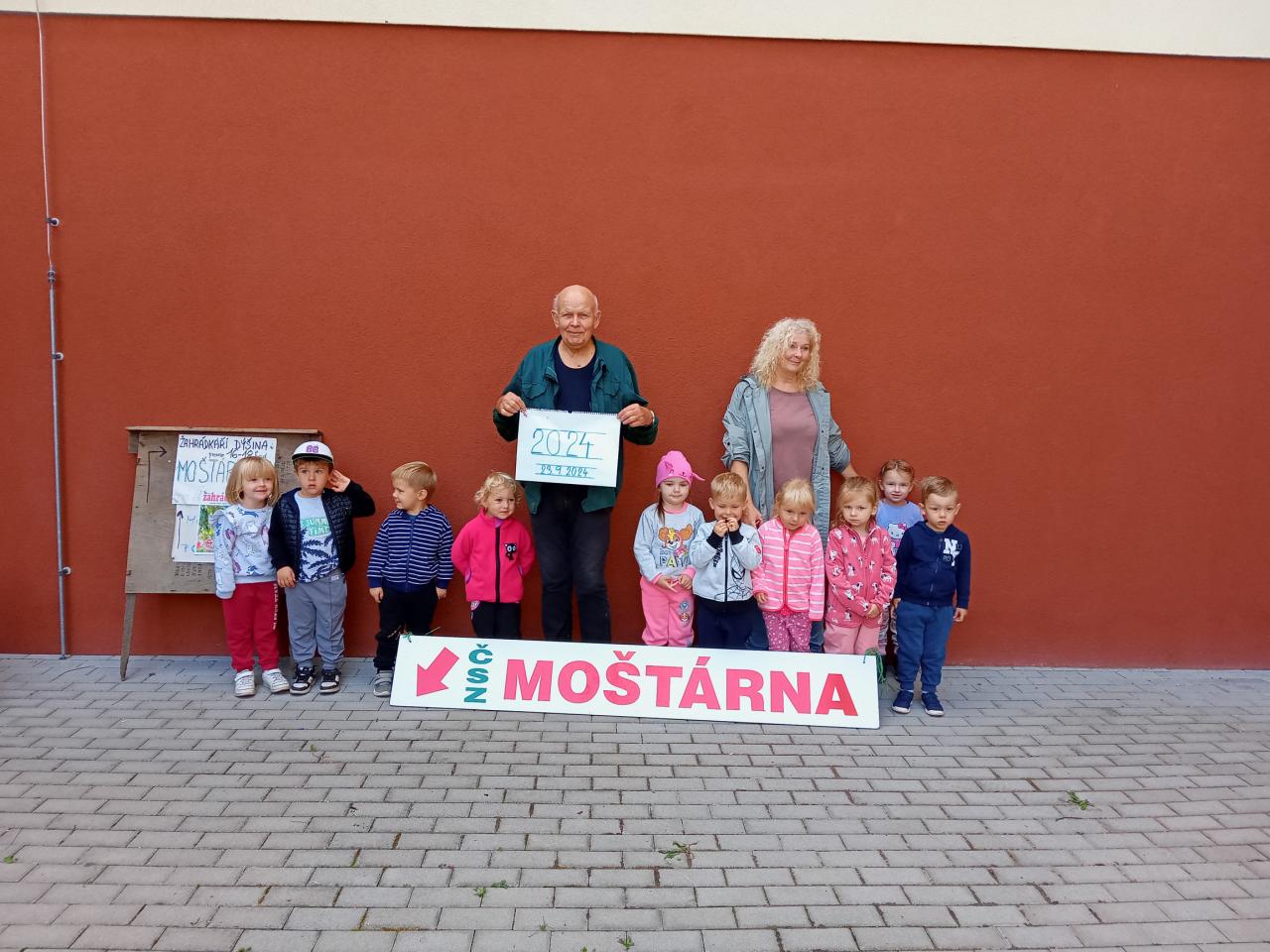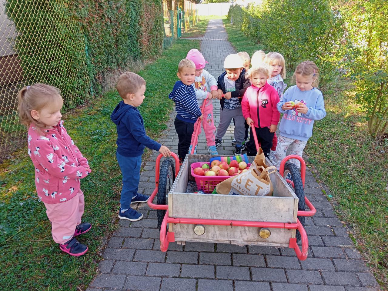 Broučci s "náhradní" paní učitelkou Simčou od včeliček a za vydatné pomoci paní uklízečky, tety Petry, prozkoumali dýšinskou moštárnu a seznámili se s celým procesem s výsledným ochutnáváním sladkého moštu.