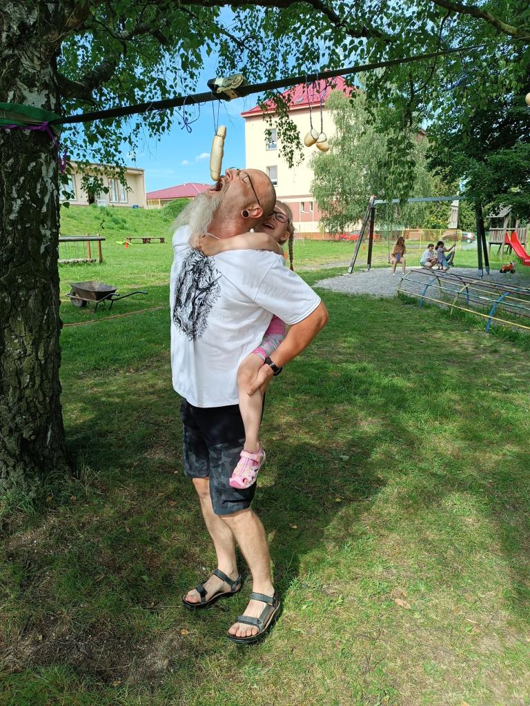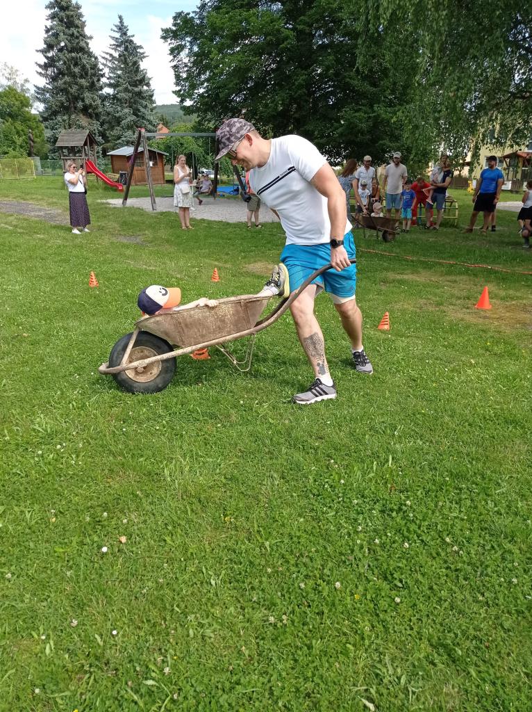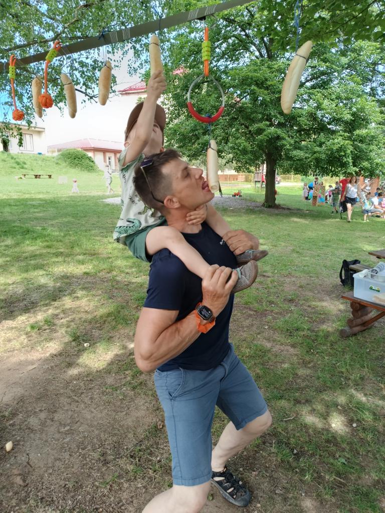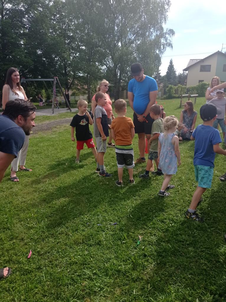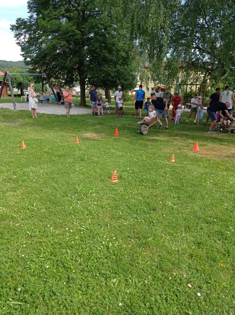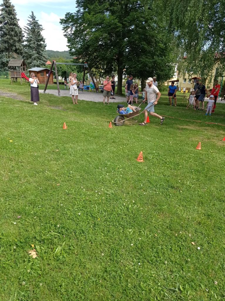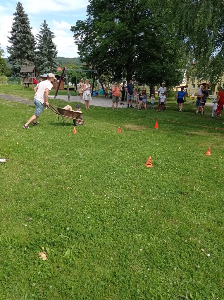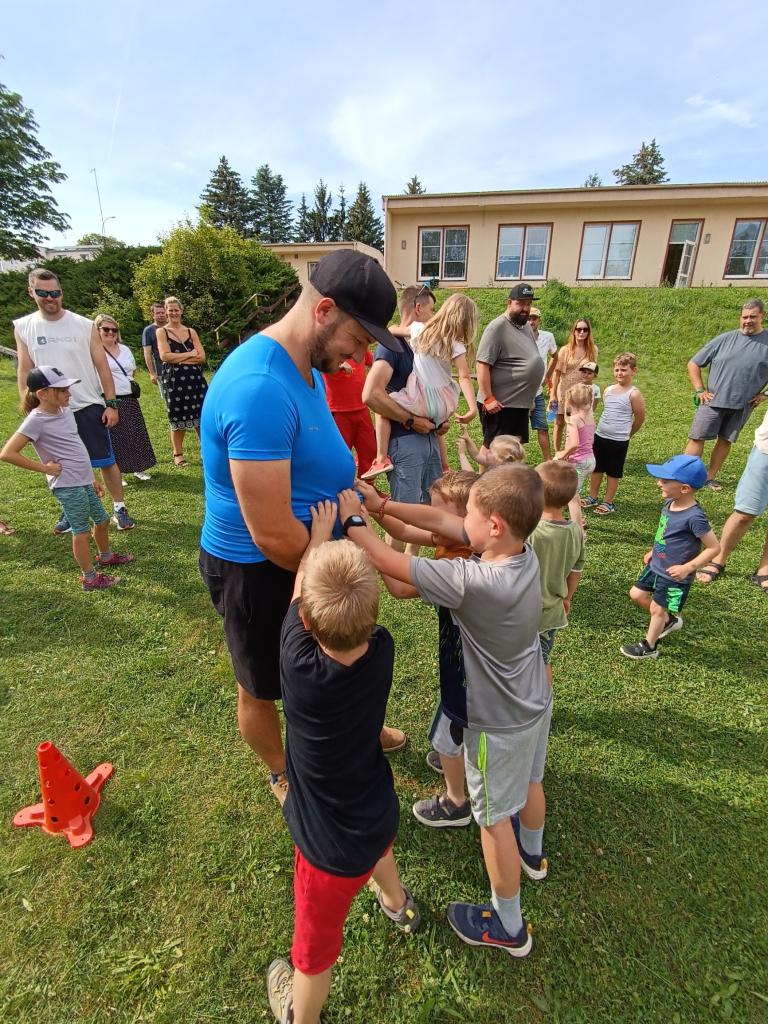 Sportovně zábavné hry a soutěže na školní zahradě.