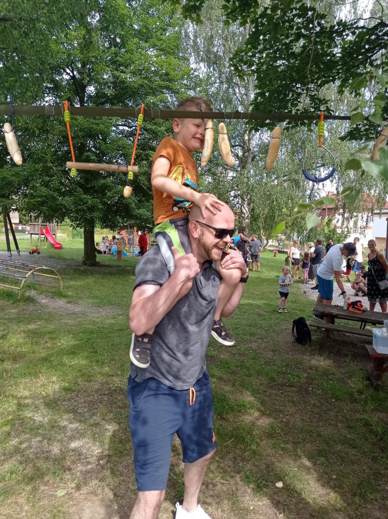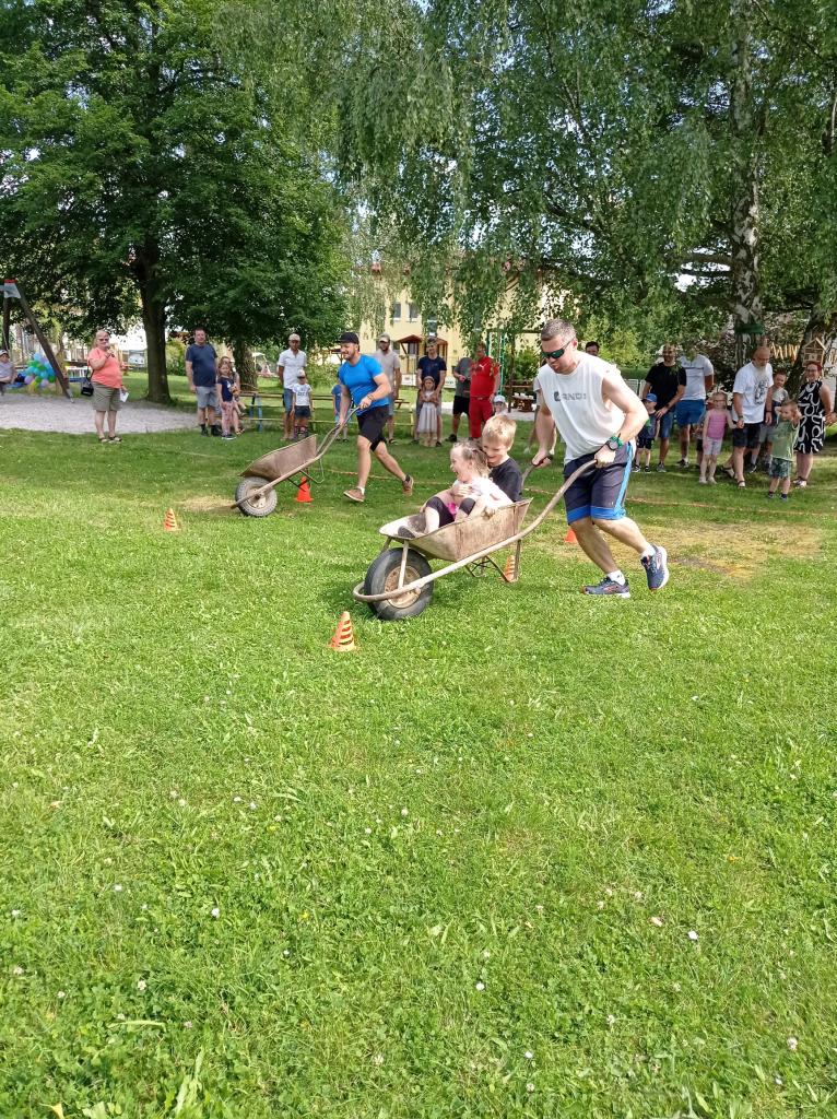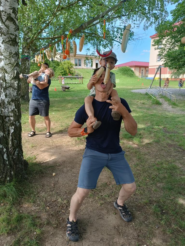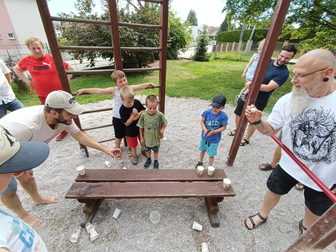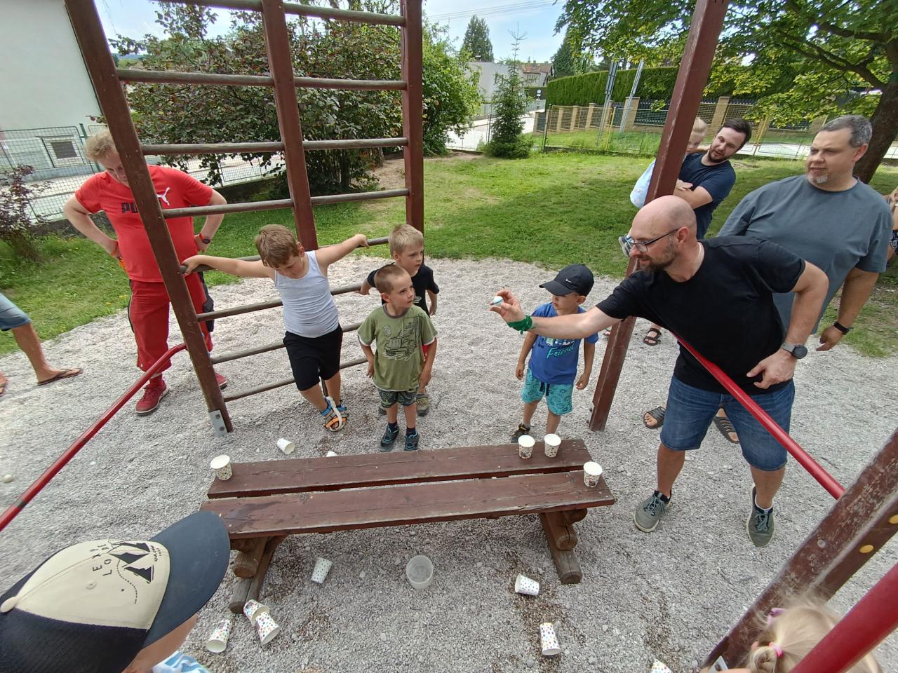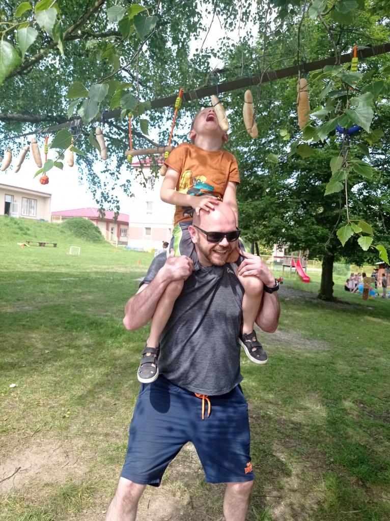 Sportovně zábavné hry a soutěže na školní zahradě.