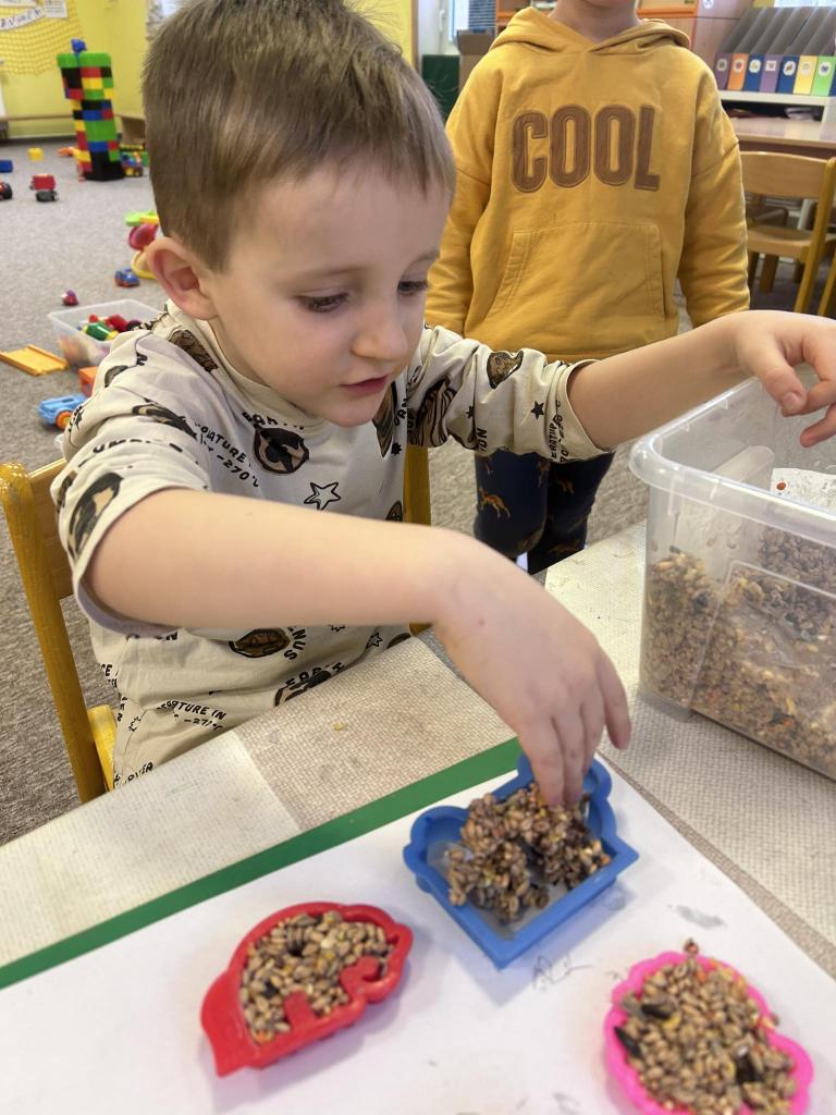 Minulý týden byl plný ptáčků. Tvořili jsme, malovali, stavěli jsme hnízda. Naučili jsme se novou písničku "Vrabeček a sýkorka" a vyrobili jsme ptáčkům i nějakou tu baštu.