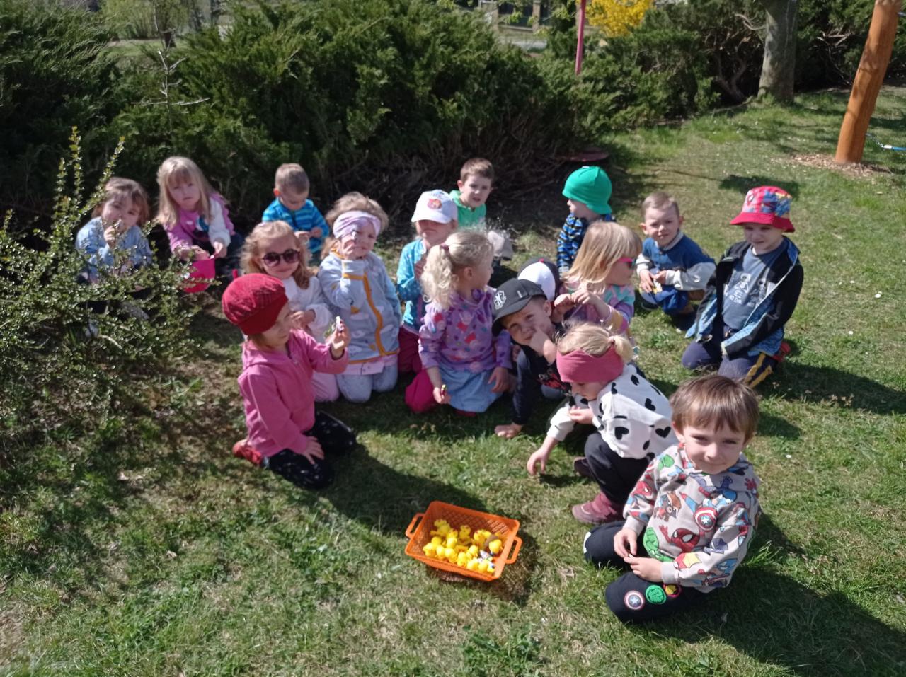 Jarní tvoření, "převoz" vajíček, schovávačka od zajíčka. To byly 2 týdny u broučků v předvelikonočním období.