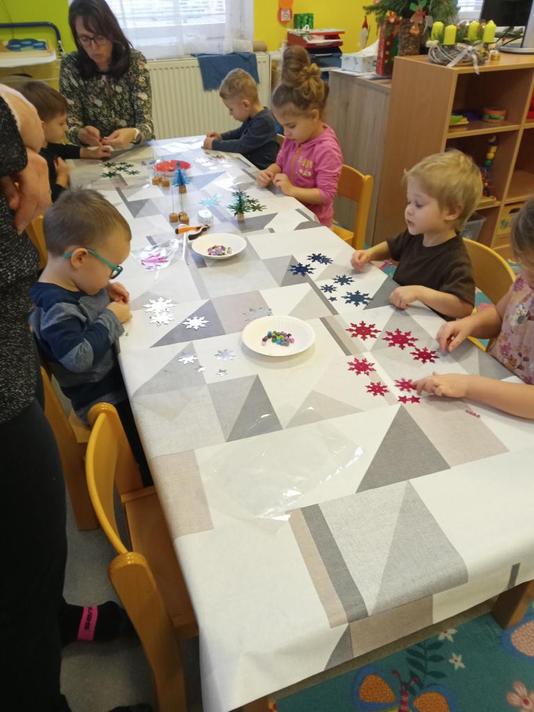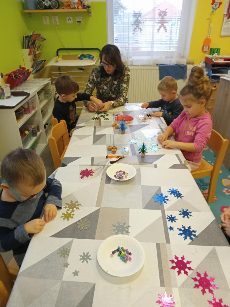Děti mají šikovné ručky. Přišly tety a vyrobily s dětmi krásné stromečky.
