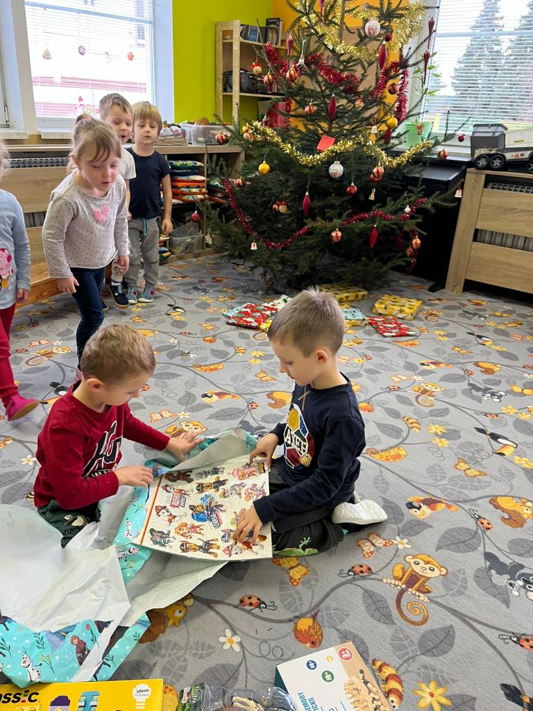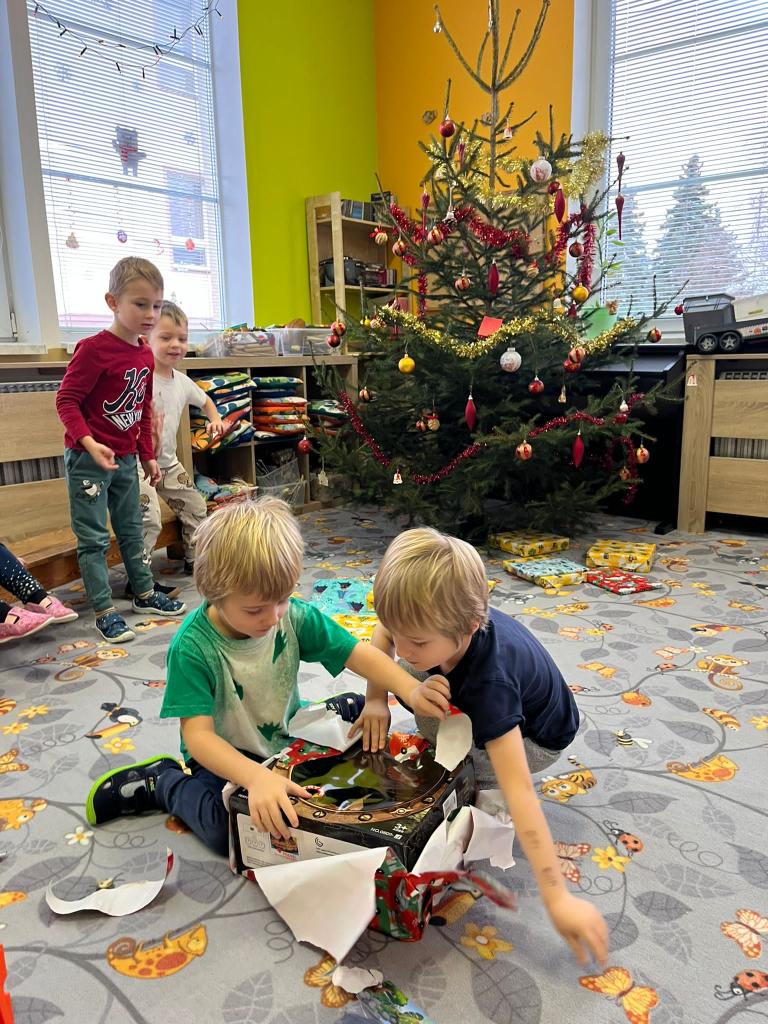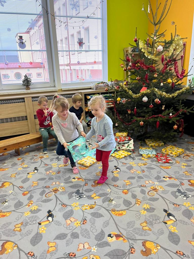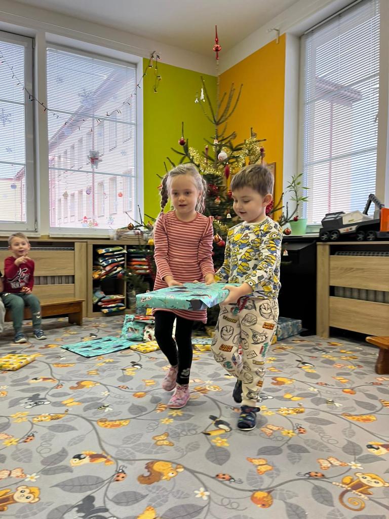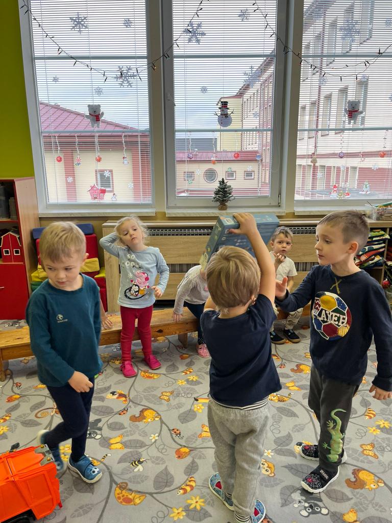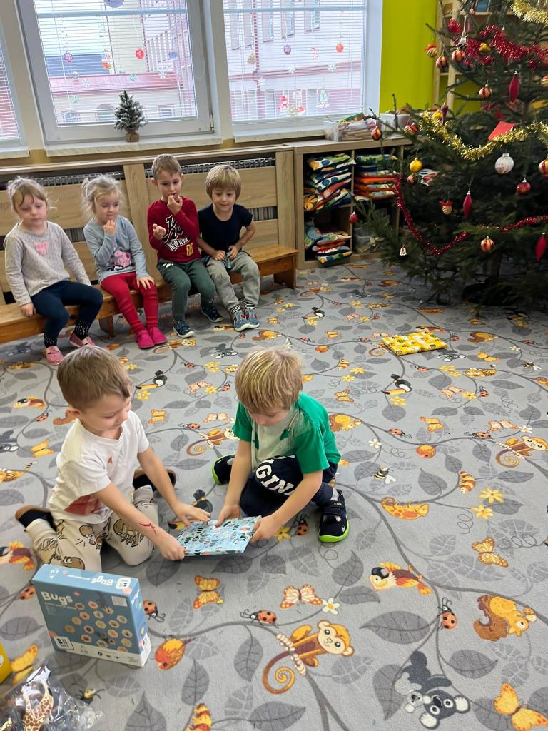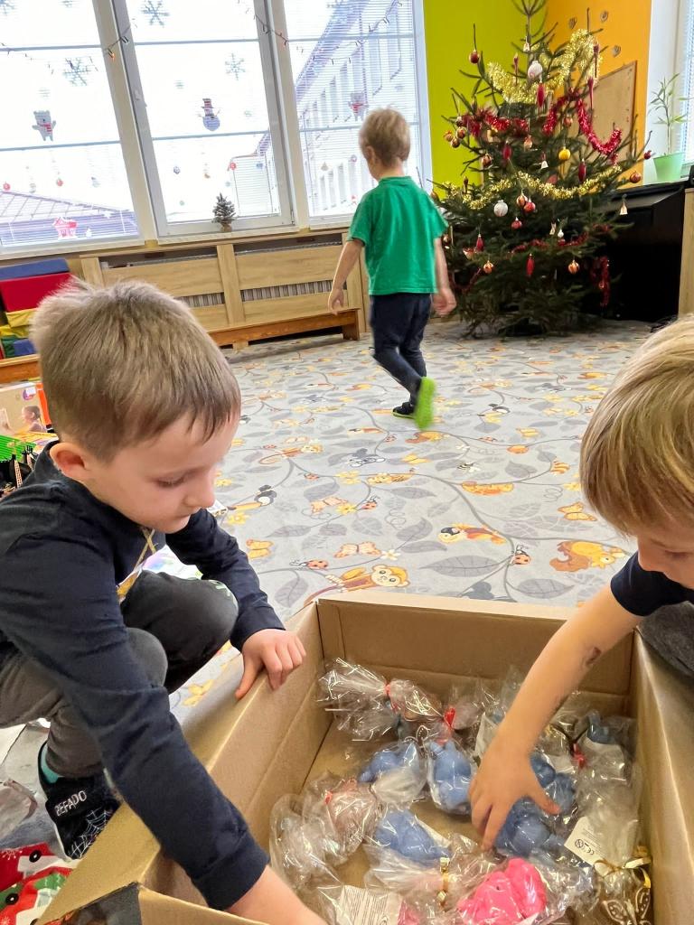 Děti si s nadšením rozbalily boxovací pytel, popelářské auto, didaktické hry (chytání rybiček, hledání barevných kolíčků, balanční panáčci), lego, tabulku na malování svého kamaráda, dětské tablety, skládací tetris, zvířátka z mořského světa a Afriky a mnoho dalších.