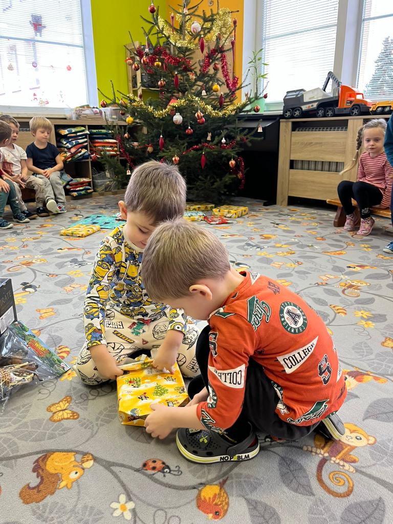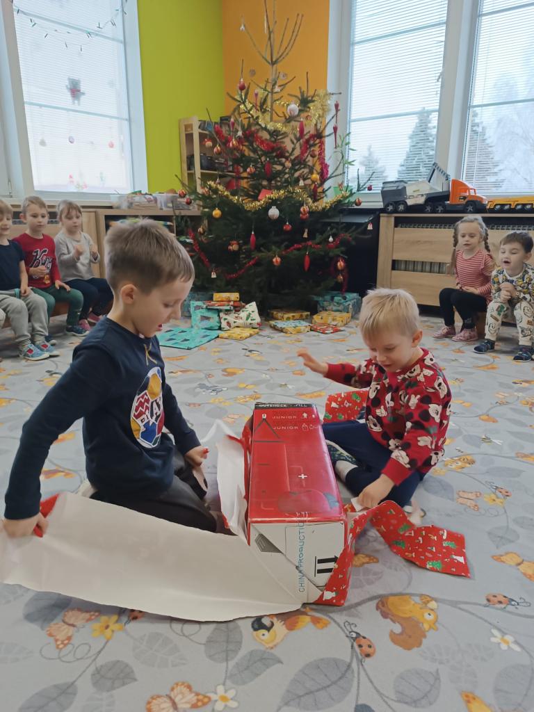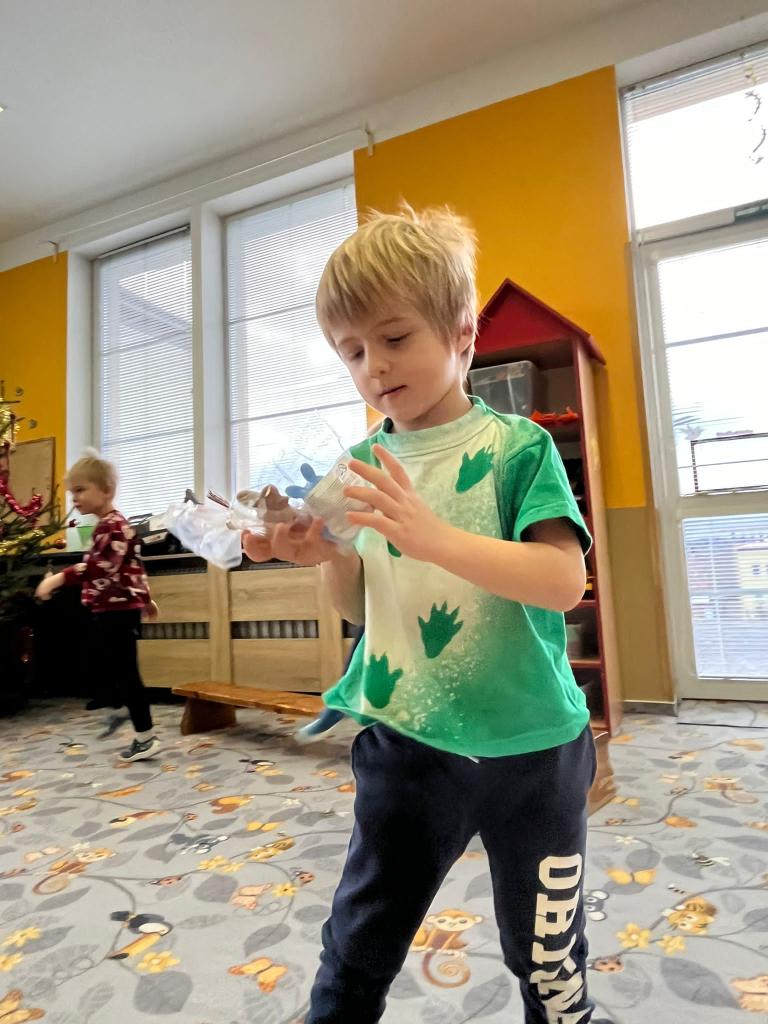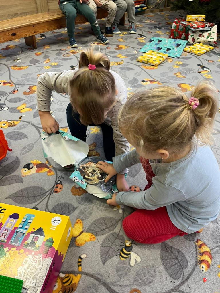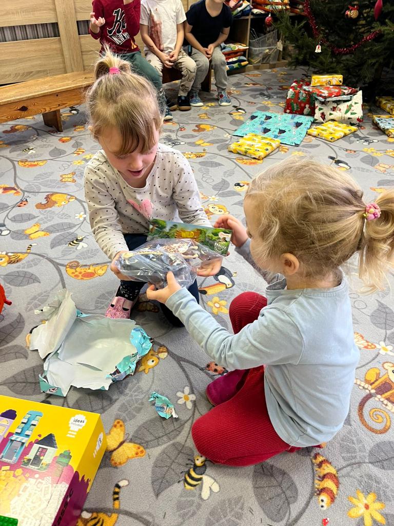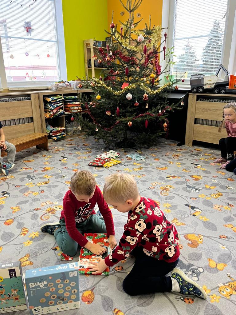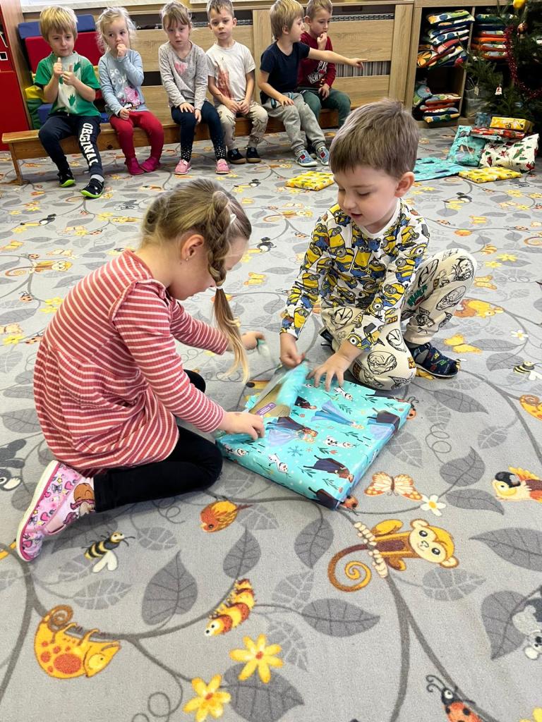 Děti si s nadšením rozbalily boxovací pytel, popelářské auto, didaktické hry (chytání rybiček, hledání barevných kolíčků, balanční panáčci), lego, tabulku na malování svého kamaráda, dětské tablety, skládací tetris, zvířátka z mořského světa a Afriky a mnoho dalších.