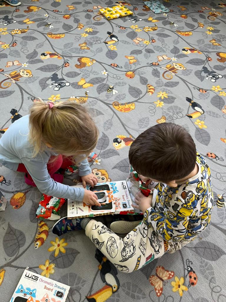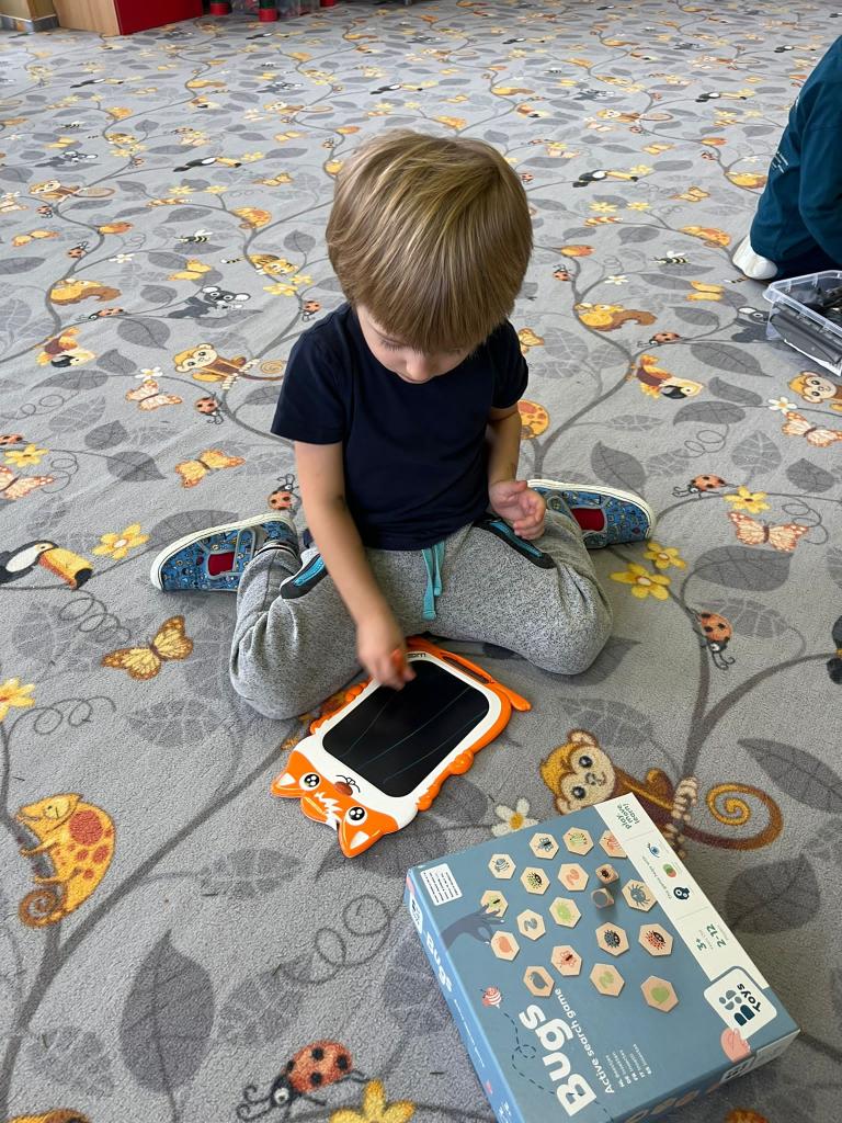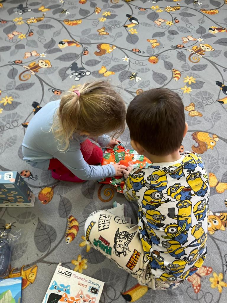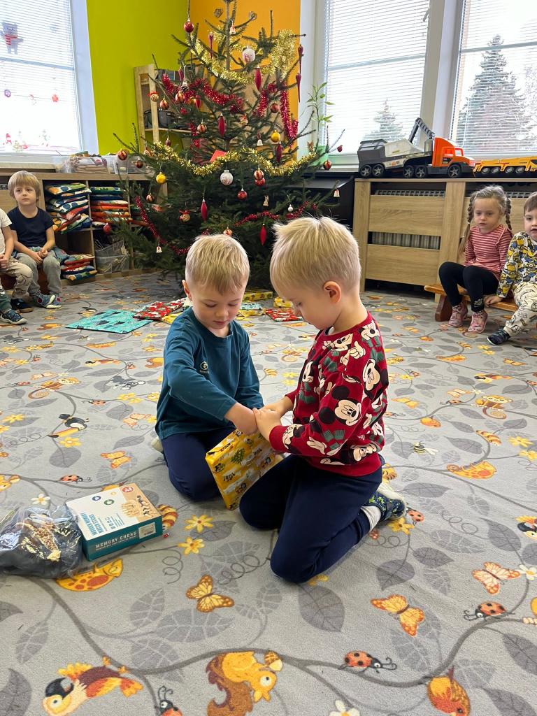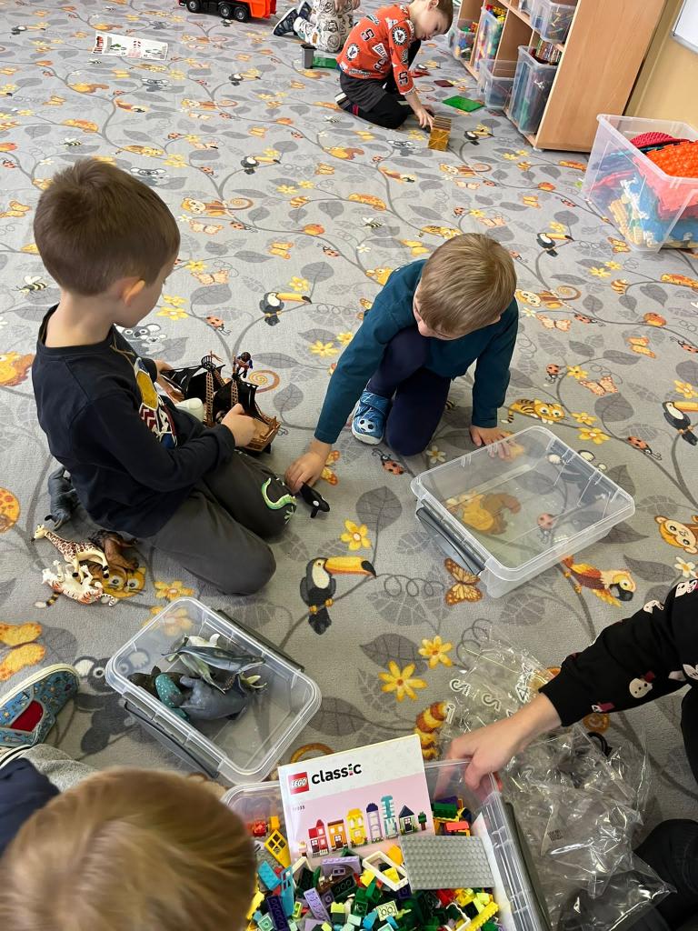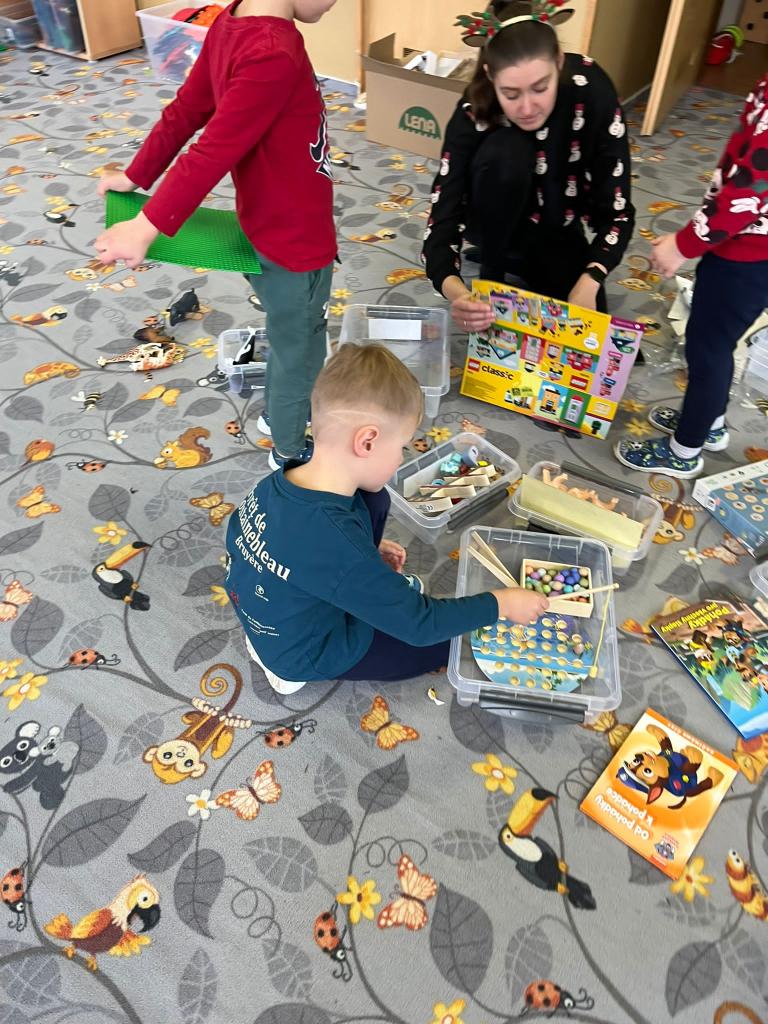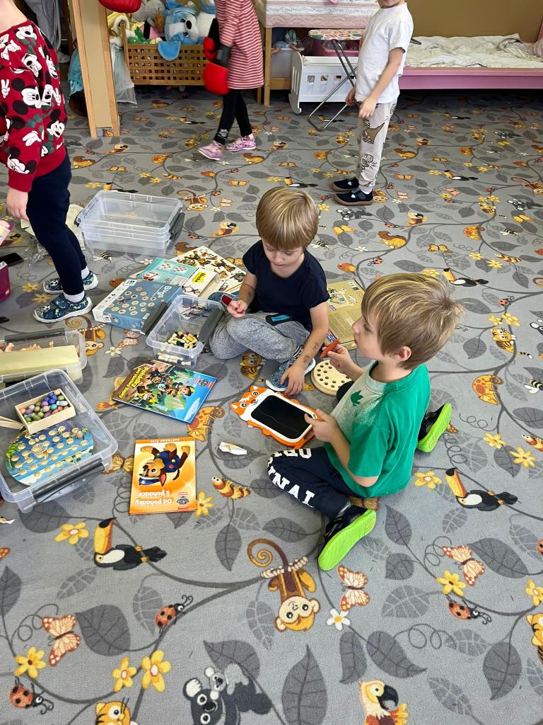 Děti si s nadšením rozbalily boxovací pytel, popelářské auto, didaktické hry (chytání rybiček, hledání barevných kolíčků, balanční panáčci), lego, tabulku na malování svého kamaráda, dětské tablety, skládací tetris, zvířátka z mořského světa a Afriky a mnoho dalších.