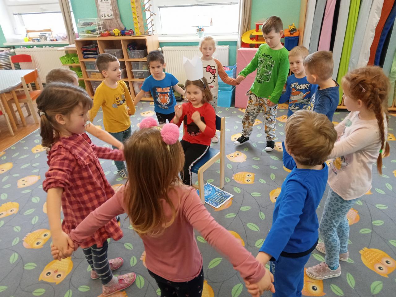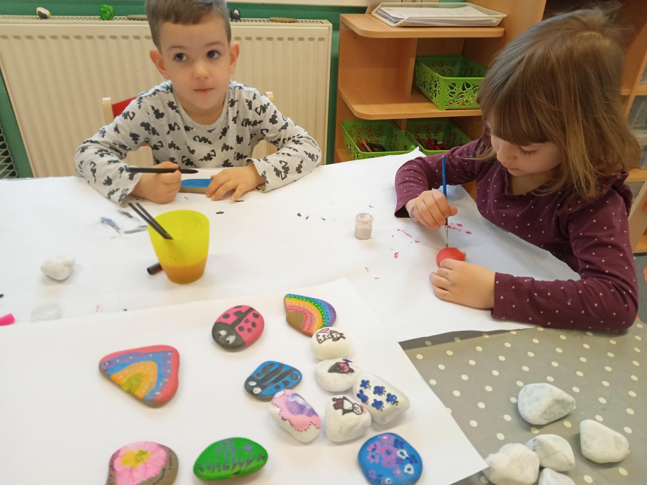 Sluníčka zaháněla královnu Zimu a lákala jaro a sluníčko malováním putovních kamínků.