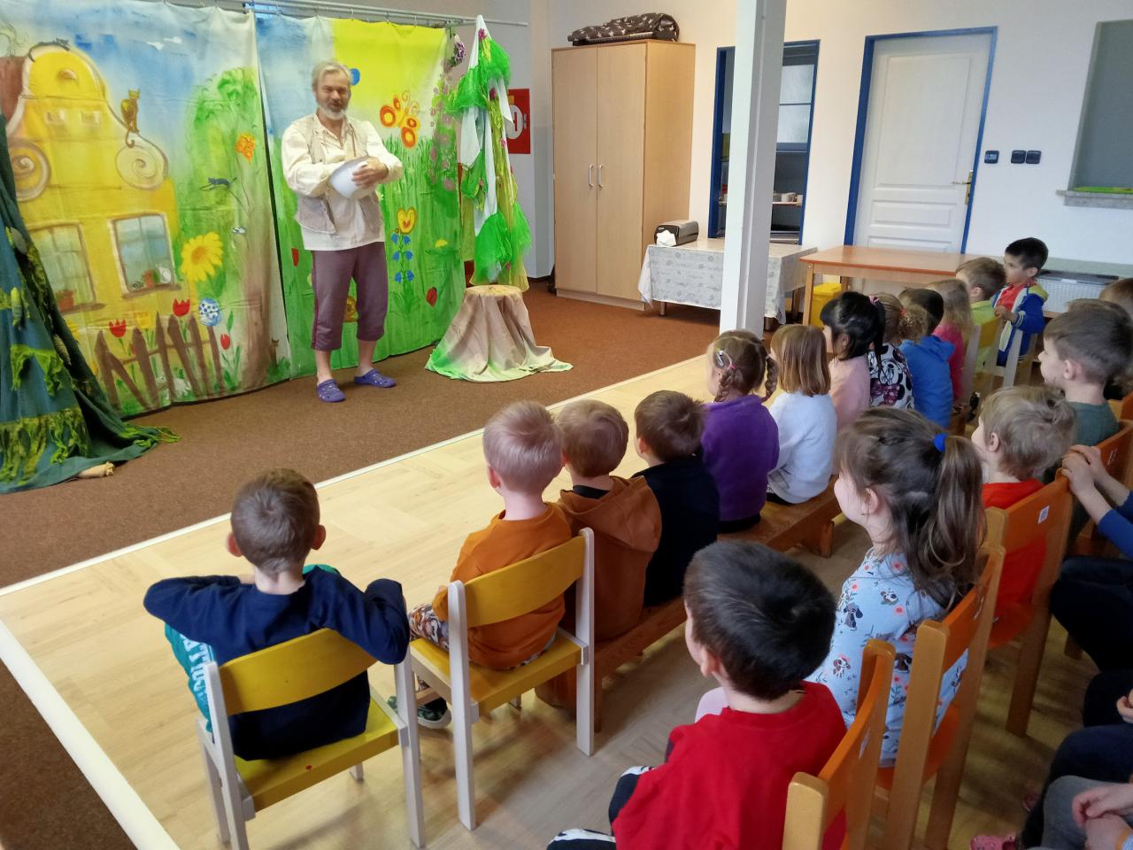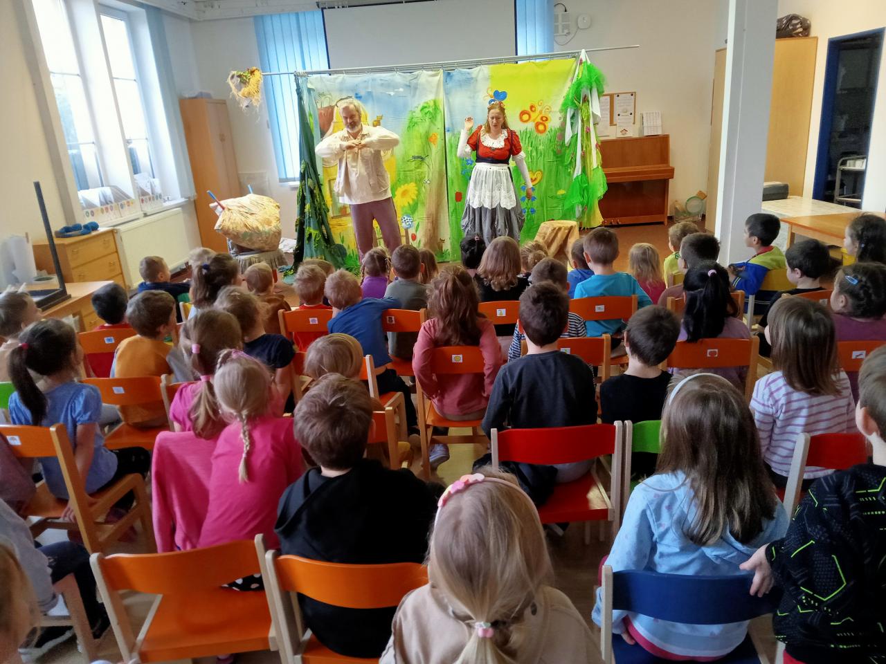 Divadlo "Kolem" nám zahrálo pohádku O líné čiperce, poprvé v naší sluníčkové třídě.