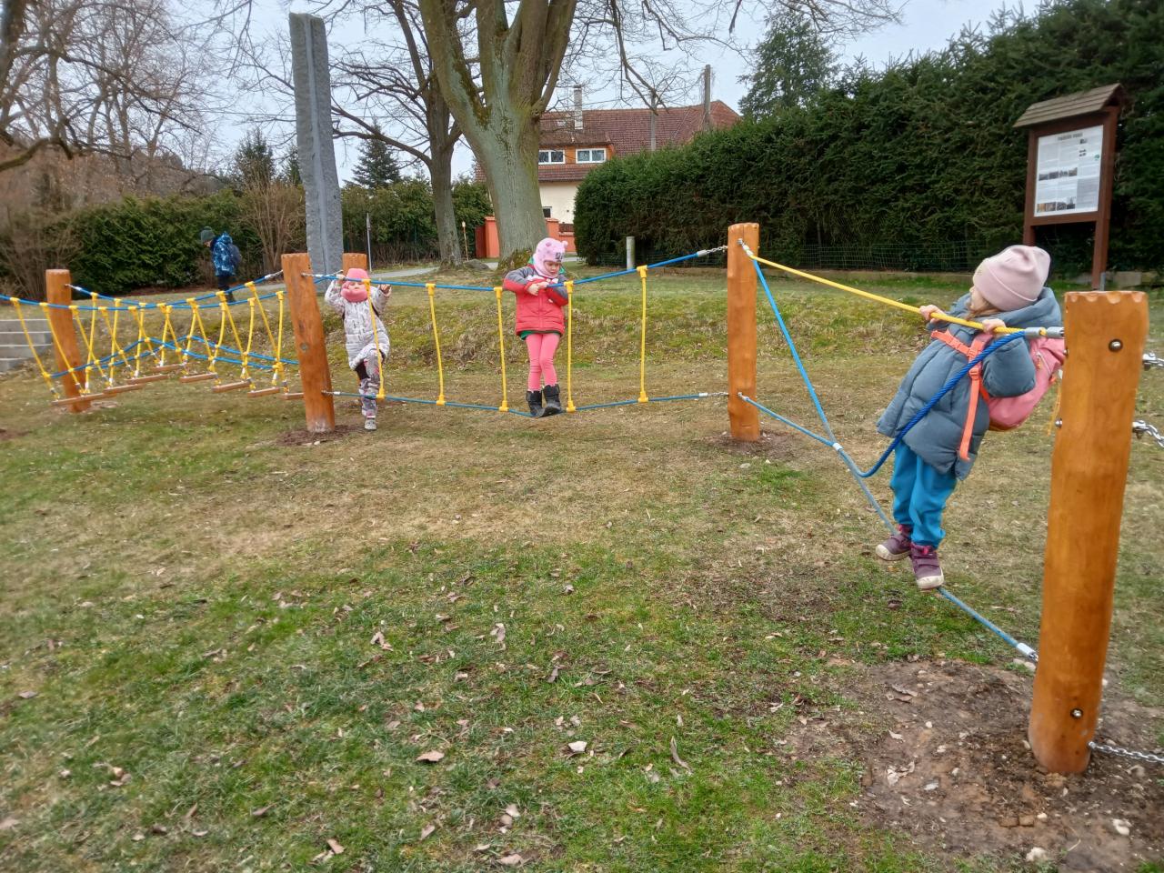 Naše další prodloužená procházka vedla do Horomyslic, podél golfového hřiště ke Klabavce a do Nové Hutě.Cestou nás potěšila malá dobrůtka od maminky v batůžku. Stačili jsme si pohrát v Paškově parku.