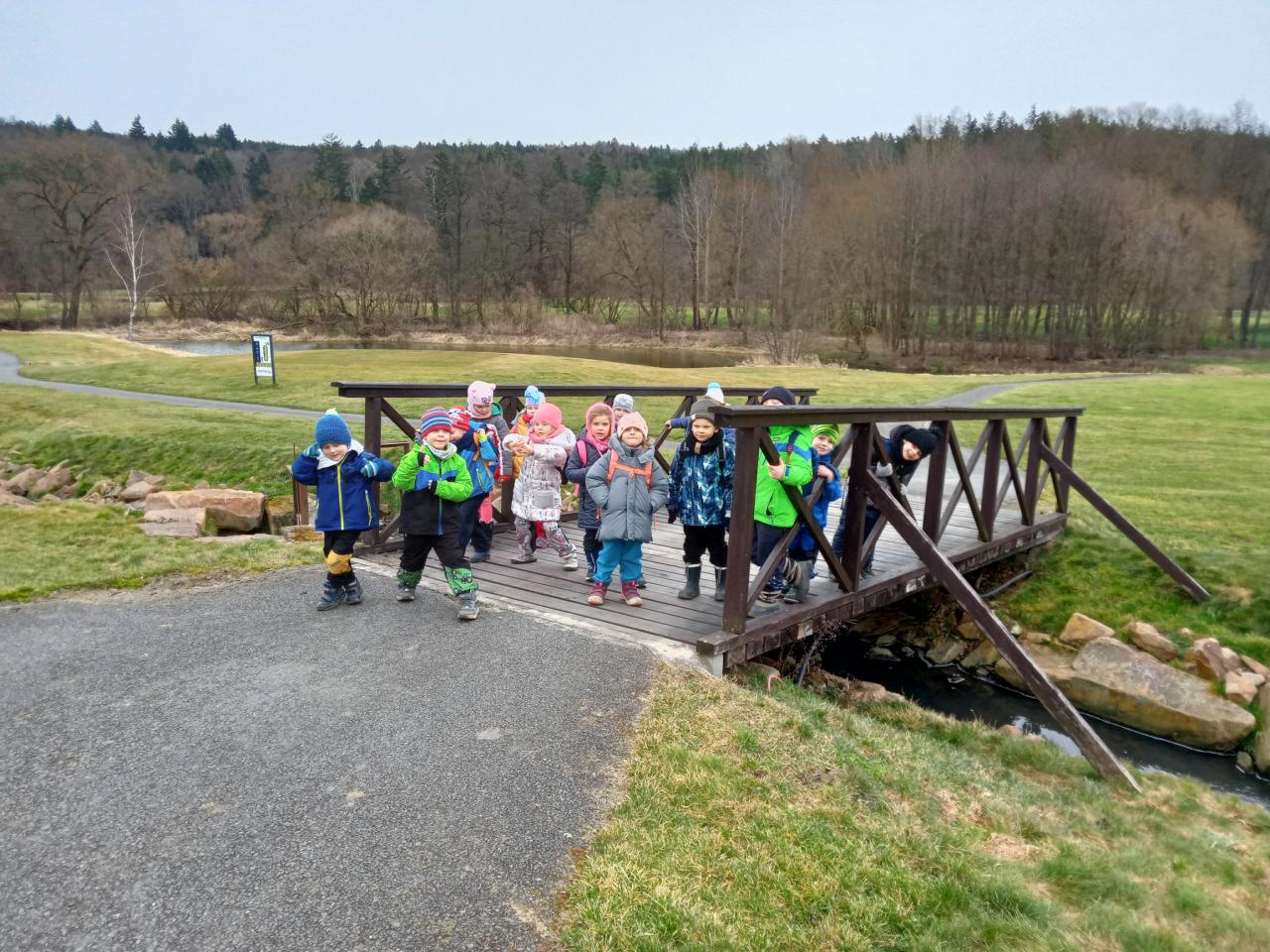 Naše další prodloužená procházka vedla do Horomyslic, podél golfového hřiště ke Klabavce a do Nové Hutě.Cestou nás potěšila malá dobrůtka od maminky v batůžku. Stačili jsme si pohrát v Paškově parku.