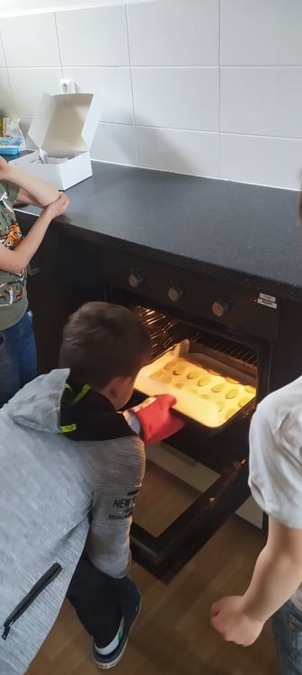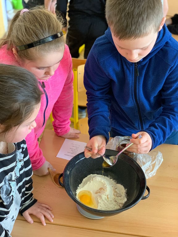 S blížícími se Velikonocemi se děti pilně činily každý den. Nejdříve jsme začali s přípravou těsta na perníčky. Děti si samy připravily těsto podle zadaného receptu. V dalších dnech rozválely, vykrájely a upekly. I zdobení zvládly na jedničku! Hotové nazdobené perníčky si spravedlivě rozdělily a "zabalily" do vlastnoručně nazdobených pytlíčků. Družinu jsme si postupně vyzdobili velikonočními ozdobami vytvořenými ze zažehlovacích korálků. Barevní zajíčci, vajíčka a slepičky vynikly na trnkových větvích. Na nástěnce na stromech se uhnízdili ptáčci a v trávě zanechal zajíček velikonoční vajíčka.