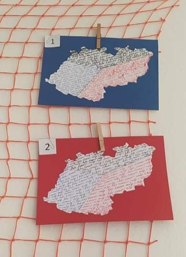 Další tvoření je spojené s výkresy do výtvarné soutěže pořádané Ministerstvem vnitra.Tentokrát pracujeme na stvárnění České republiky pomocí grafologie a na koláži s hasičskou tématikou.