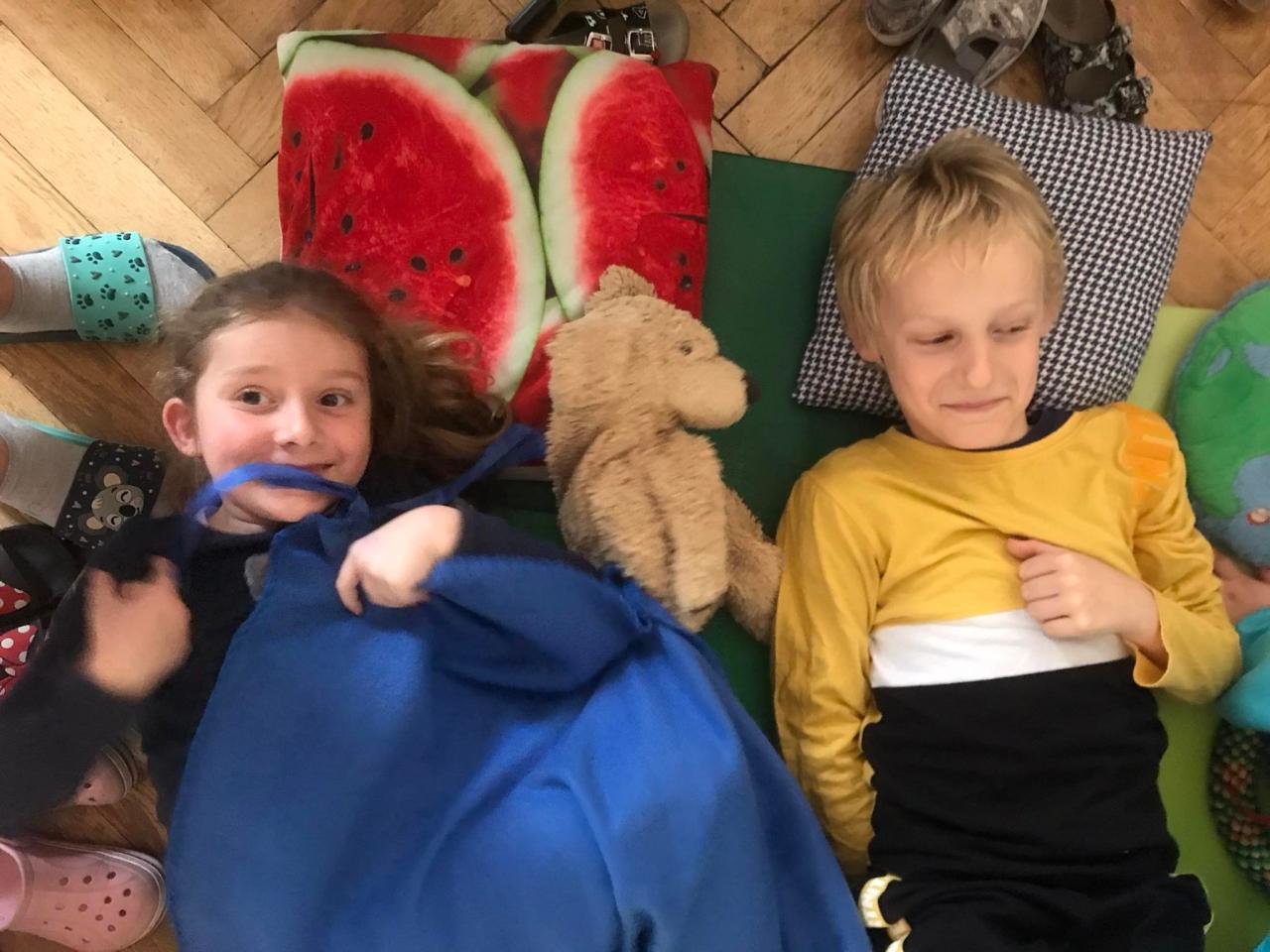 Listopadovým pranostikám jsme se věnovali velmi rozmanitě. Po shlédnutí dokumentu o sv. Martinovi jsme vyráběli koníky a podkovičky. Svatou Kateřinu jsme spojili asi s nejoblíbenější aktivitou měsíce - PYŽAMOVOU PÁRTY. Děti se nemohly vytouženého pátku dočkat. Další celodružinový projekt se vydařil na výbornou. Pyžamová párty pohltila úplně všechny. Zvládli jsme nejen společný tanec (Kačací tanec, Kuličku, tanec se židličkou), ale i oblíbenou židličkovanou. Výherci židličkované byli ohodnoceni body do družinové soutěže. První část jsme zakončili pyžamovým průvodem po škole. Ve druhé části přišla na řadu i pohádka, jak jinak než polská, Bolek a Lolek.