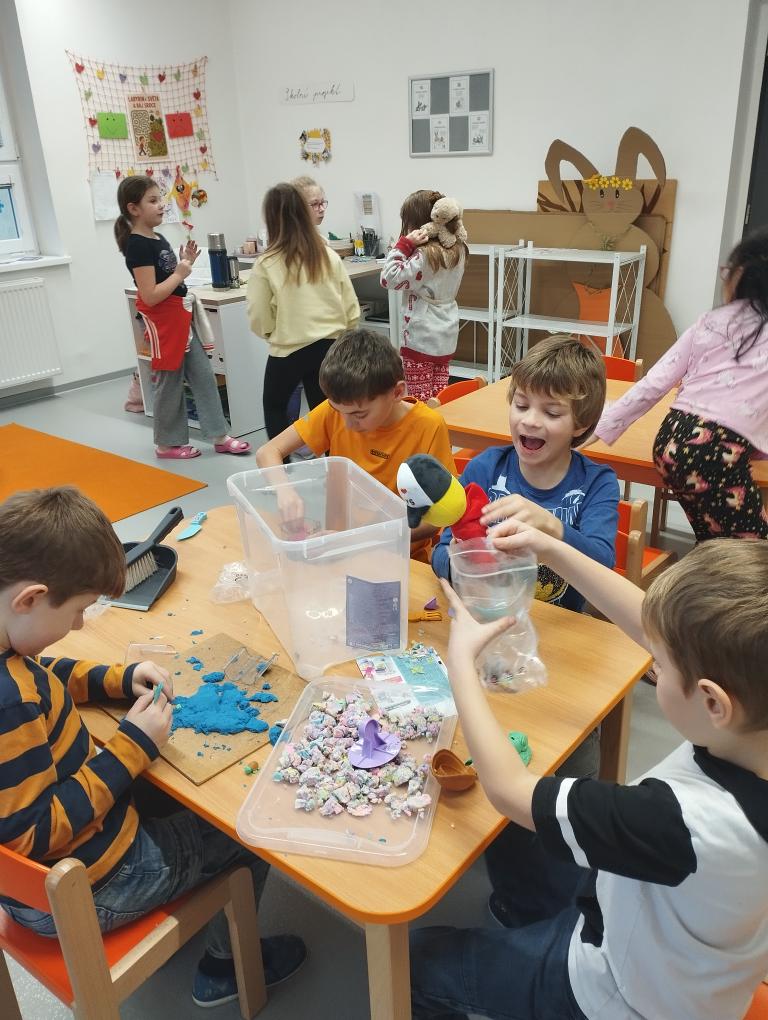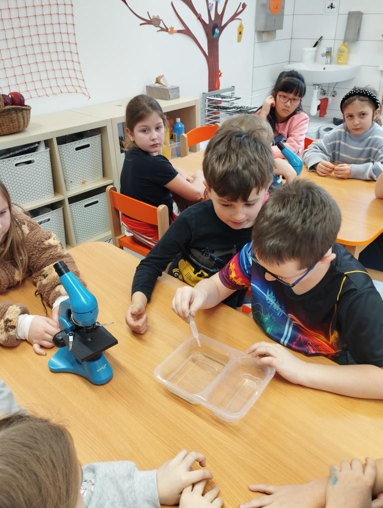 Nový rok jsme zahájili vánoční nadílkou a pořádně si užili nové hračky. Vyrobili jsme dárečky pro děti k zápisu do první třídy a k dotvoření na Den otevřených dveří. Z přírodovědné učebny jsme si vypůjčili mikroskopy, abychom důkladně prozkoumali tání sněhu a jeho čistotu. Na notebooku jsme online pozorovali zvířátka u krmítka ze Záchrané stanice Makov.