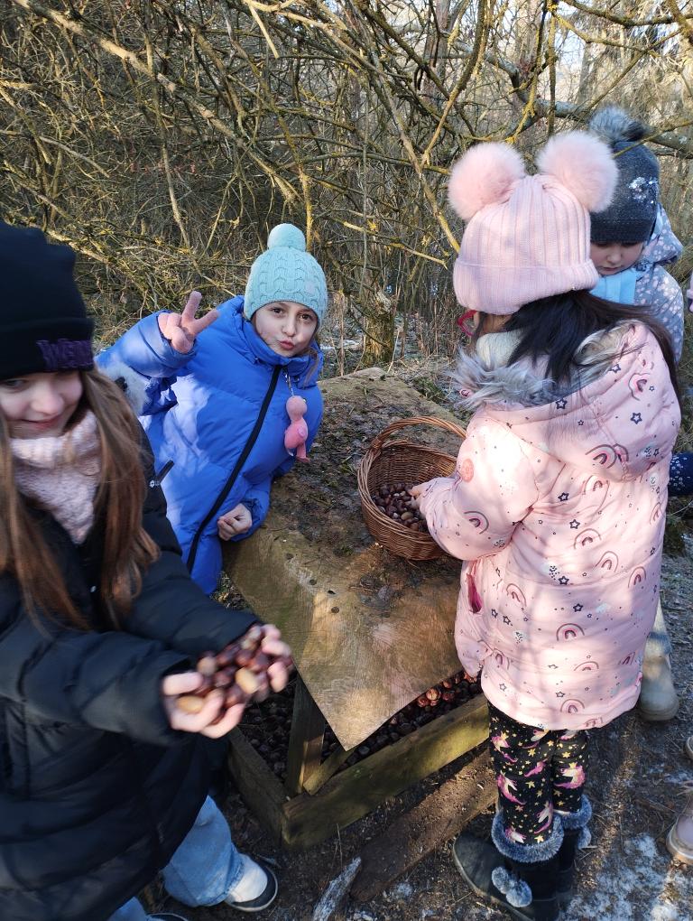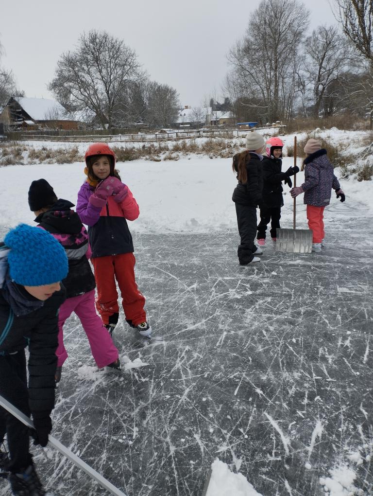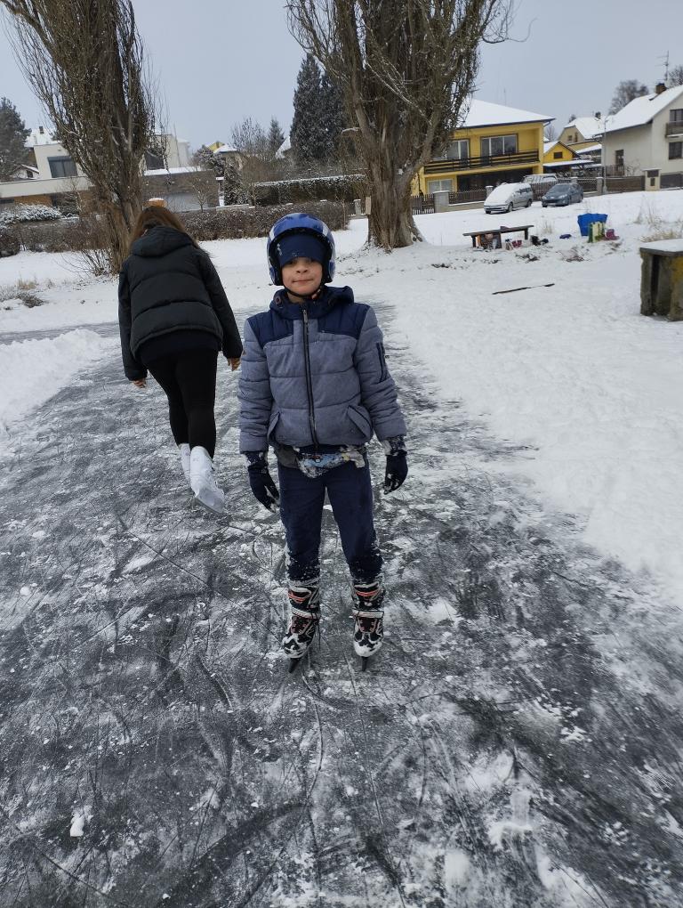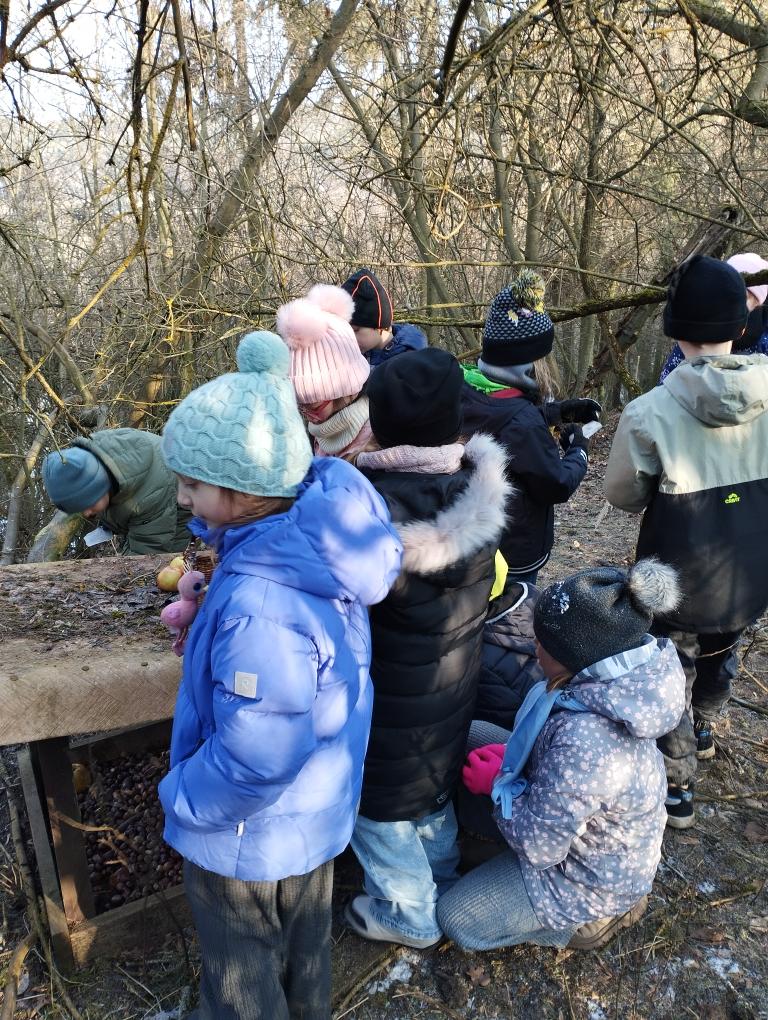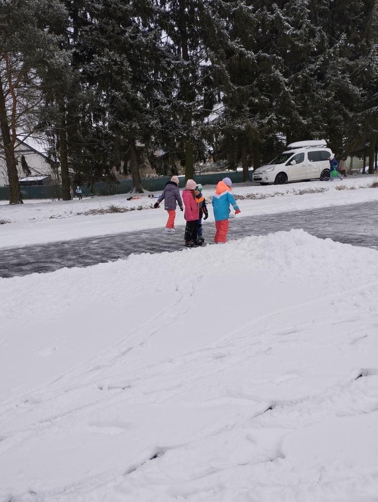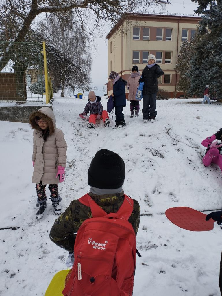 Díky úžasnému i proměnlivému lednovému počasí jsme si užili spoustu zimních radovánek. Napadl nám sníh, tak jsme si pořádně zabobovali. Zamrzl nám rybník a my byli společně bruslit, někteří dokonce poprvé. Když přišla obleva, tak nás sluníčko vytáhlo i na tartanové hřiště za školou. A pak nám napadla zase halda sněhu a my jsme opět vyrazili na boby. Zasněženou krajinou jsme se také vydali k blízkému krmítku s dobrotami pro zvířtka. S podzimního tvoření nám zbylo spoustu kaštanů a žaludů a některé děti také přinesly mrkev a jablíčka.