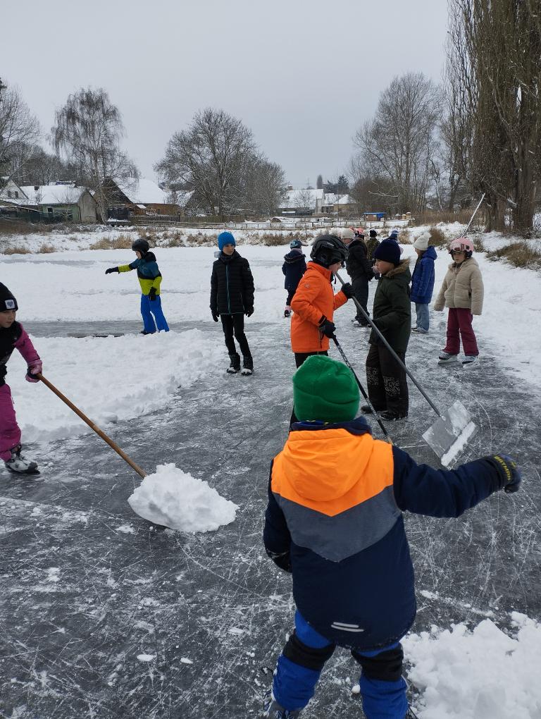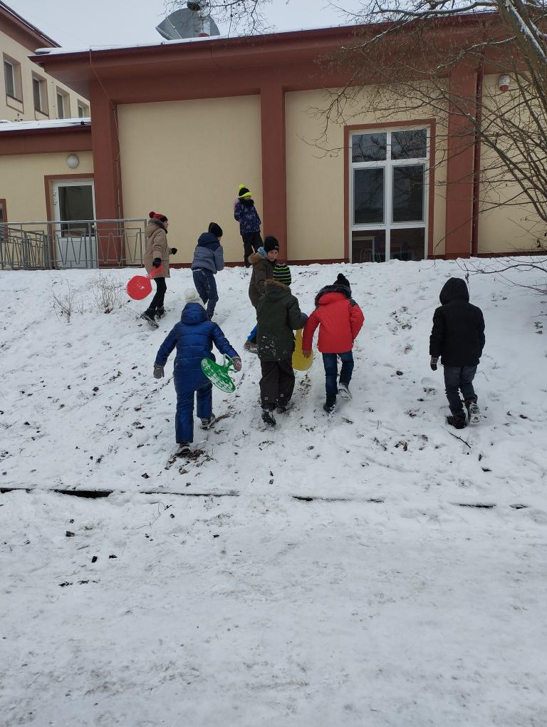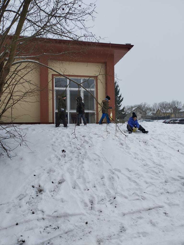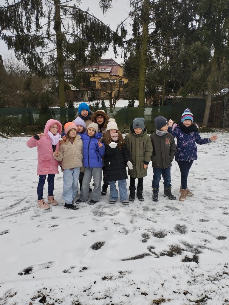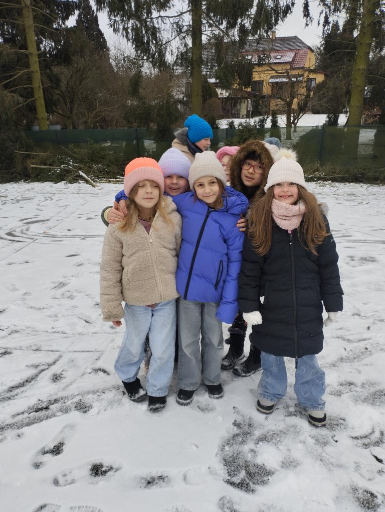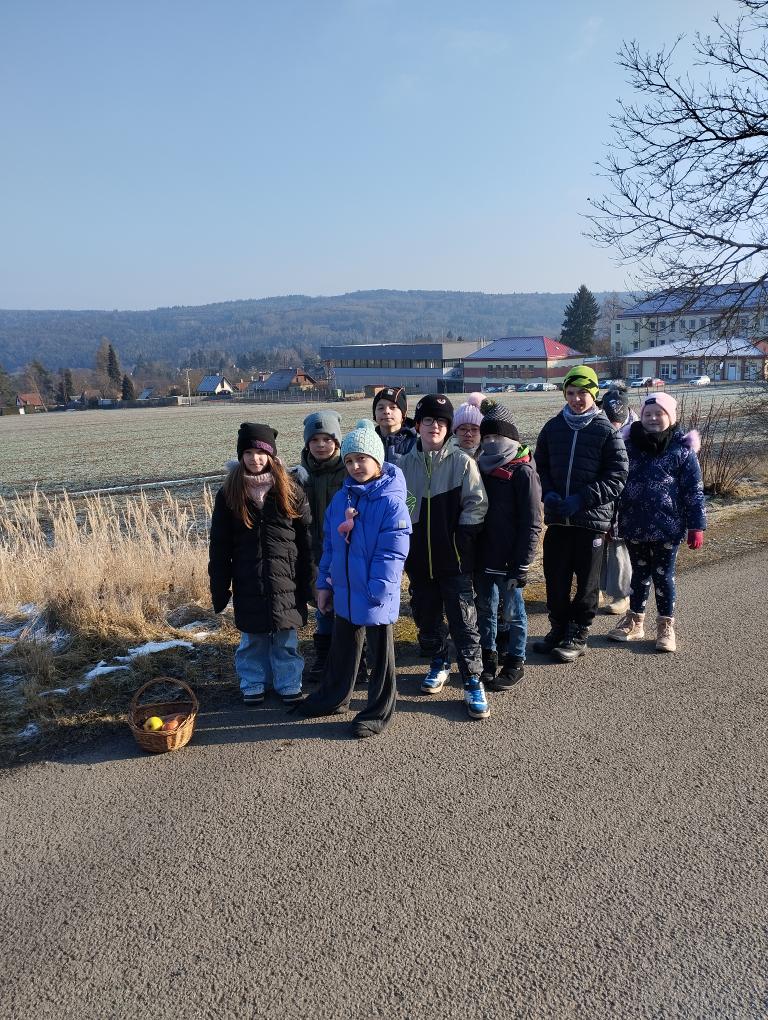 Díky úžasnému i proměnlivému lednovému počasí jsme si užili spoustu zimních radovánek. Napadl nám sníh, tak jsme si pořádně zabobovali. Zamrzl nám rybník a my byli společně bruslit, někteří dokonce poprvé. Když přišla obleva, tak nás sluníčko vytáhlo i na tartanové hřiště za školou. A pak nám napadla zase halda sněhu a my jsme opět vyrazili na boby. Zasněženou krajinou jsme se také vydali k blízkému krmítku s dobrotami pro zvířtka. S podzimního tvoření nám zbylo spoustu kaštanů a žaludů a některé děti také přinesly mrkev a jablíčka.