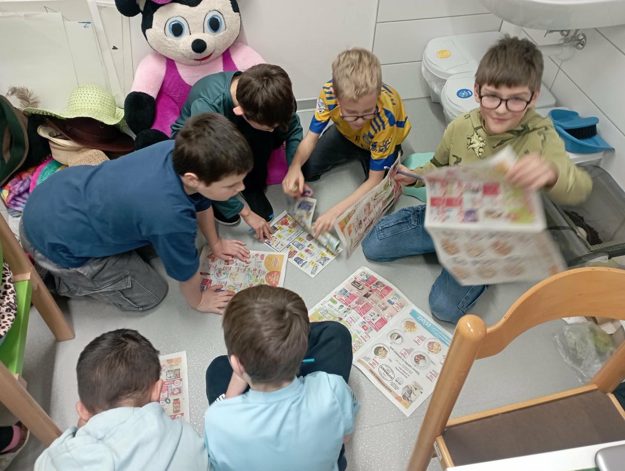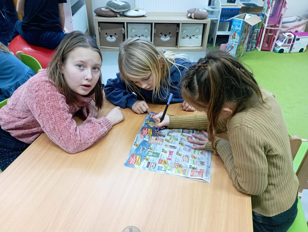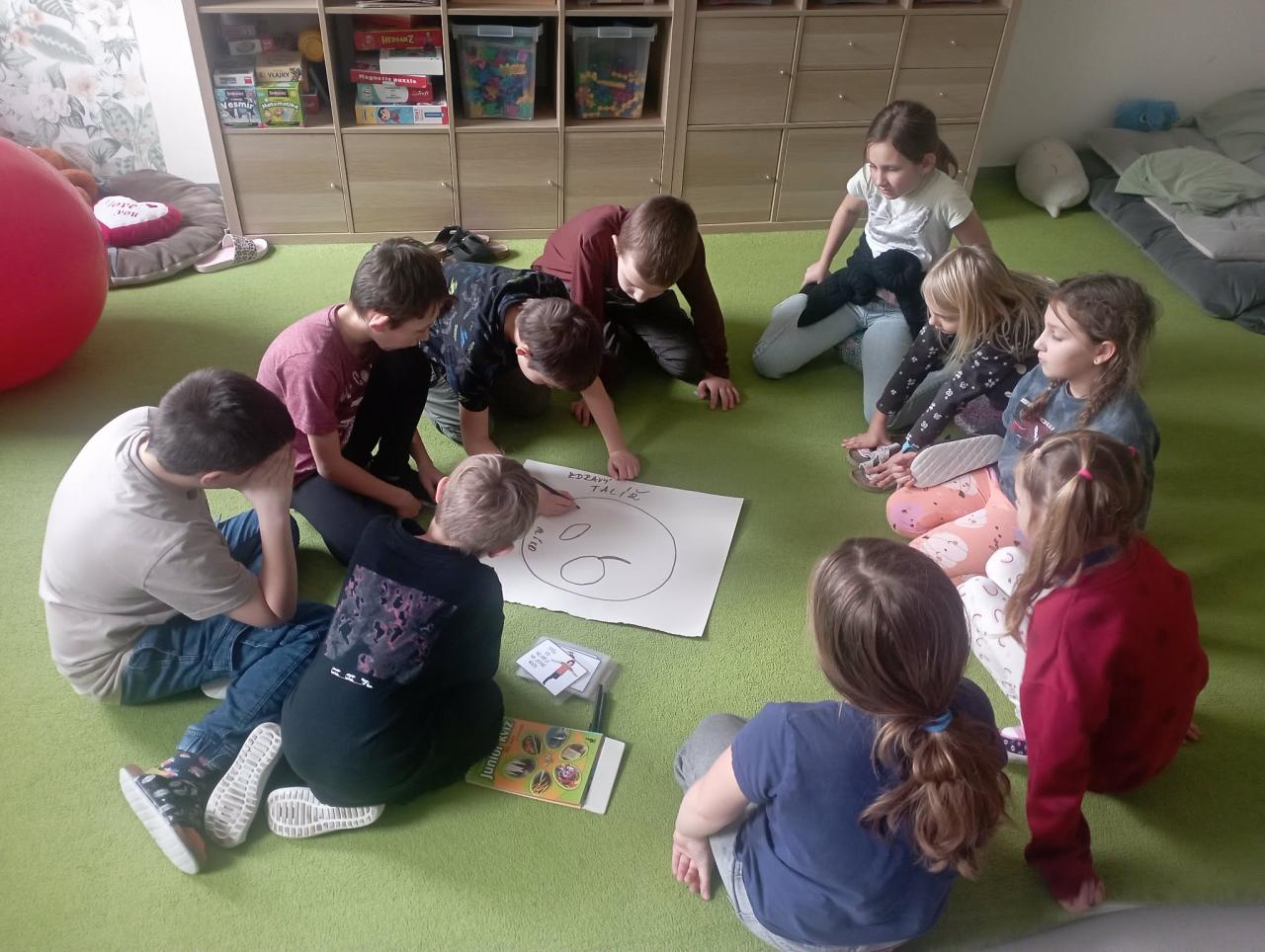 Pozornost jsme věnovali i duševní pohodě člověka – hovořili jsme o tom, že stres škodí a že je důležité umět také odpočívat. Dopřáli jsme si společnou „pohodovou“ chvilku u pohádky Život k sežrání, kterou vřele doporučujeme i dospělým, a následně jsme se k tématu vraceli při společné diskuzi. Pomocí letáků z obchodů děti vyhledávaly potraviny, které jsou pro naše tělo prospěšné, a naopak ty, které mu škodí.