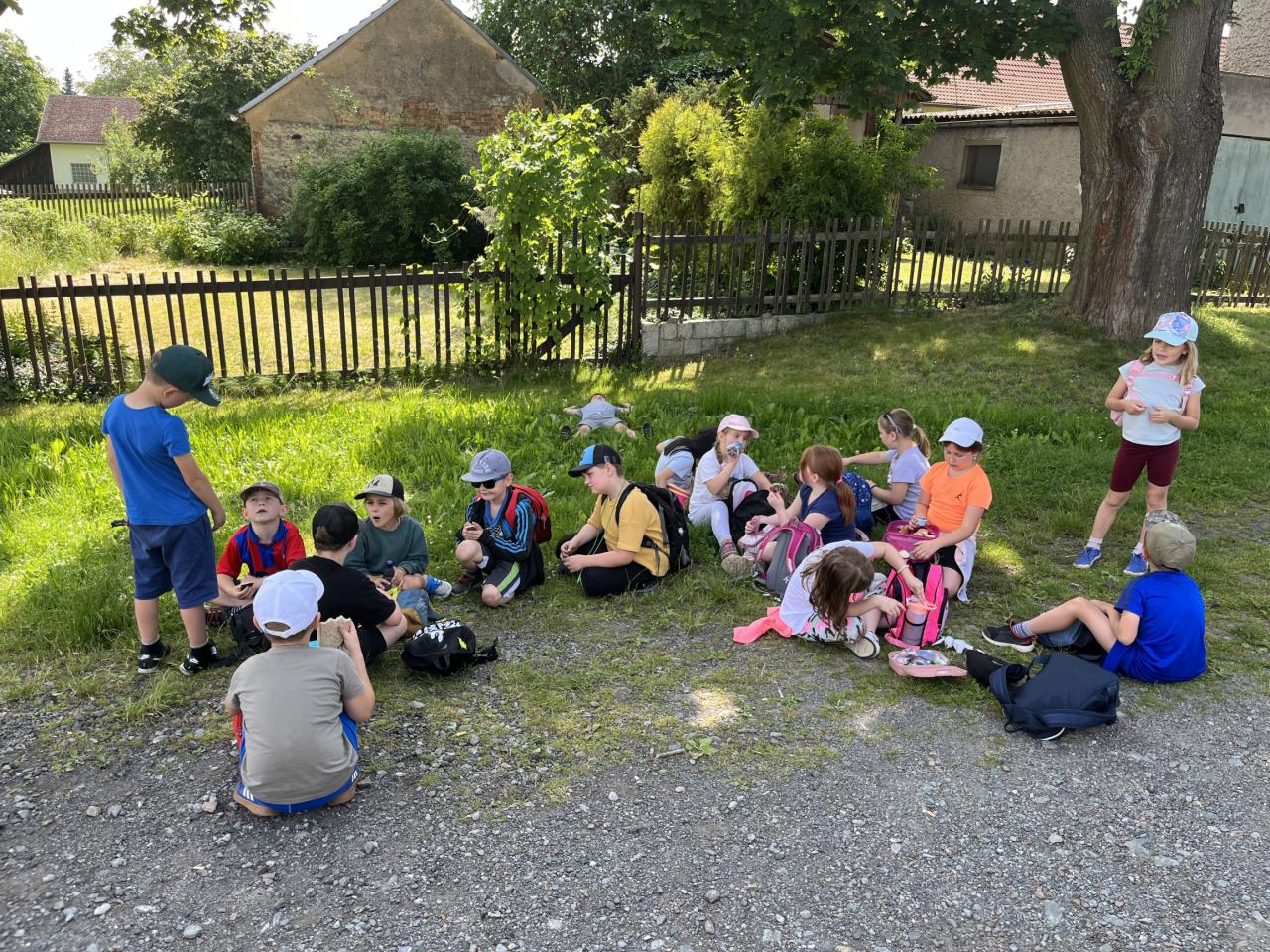 Ve středu 18. 6. jsme se vydali na školní výlet do kempu Ejpovice. S nadšením jsme vyrazili od školy na vlakovou zastávku v Dýšině, odkud jsme pokračovali vlakem do Ejpovic. Cestou do kempu jsme procházeli lesem, kde jsme sami nasbírali potřebné dřevo na rozdělání ohně. Paní učitelka s paní asistentkou nám sice pomáhaly s napichováním buřtů na vidlice, ale opékání jsme už zvládli úplně sami. Také jsme navštívili místní občerstvení, kde jsme ochutnali jejich výbornou ledovou tříšť a točenou zmrzlinu – schválně, jestli poznáte, jakou měla barvu. Během výletu jsme si zahráli i některé venkovní hry, z nichž nás jedna provázela i na cestě zpět. Vyběhaní, s plnými bříšky a plni nových zážitků, jsme se vrátili zpátky ke škole, kde náš výlet skončil.