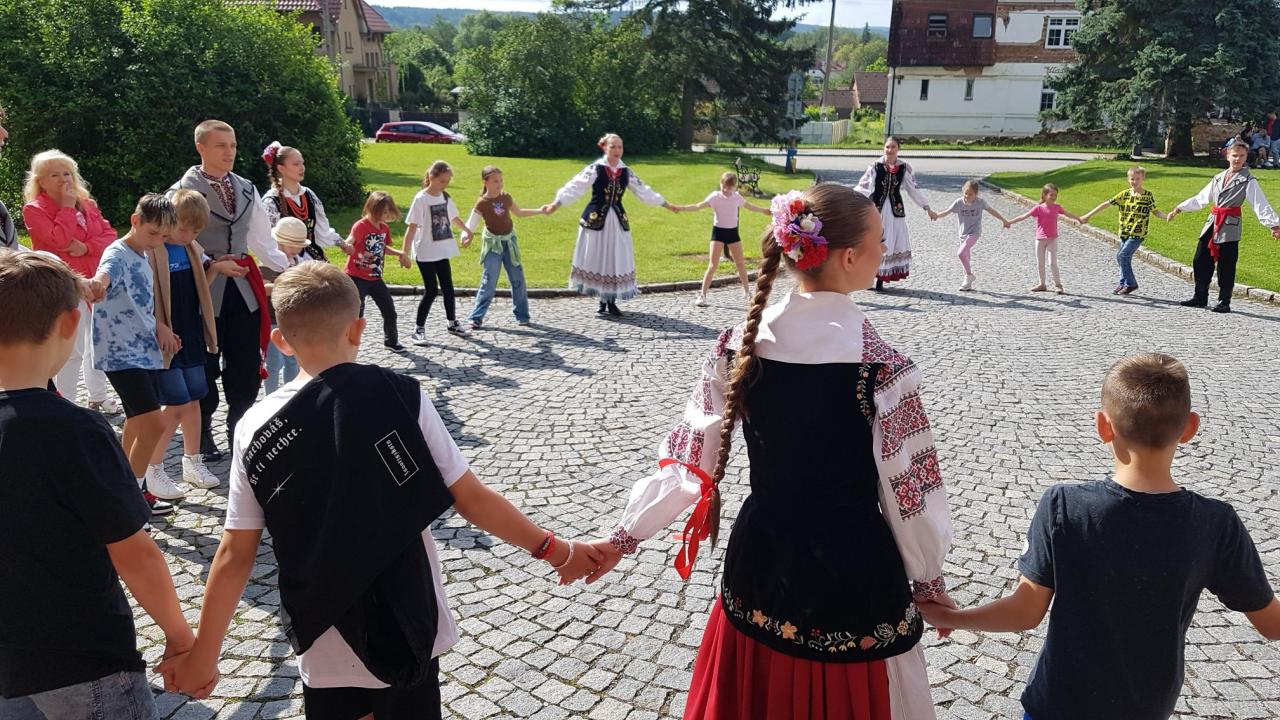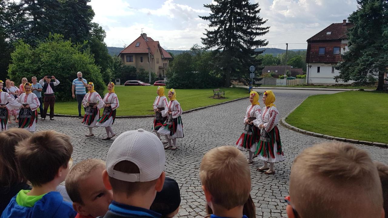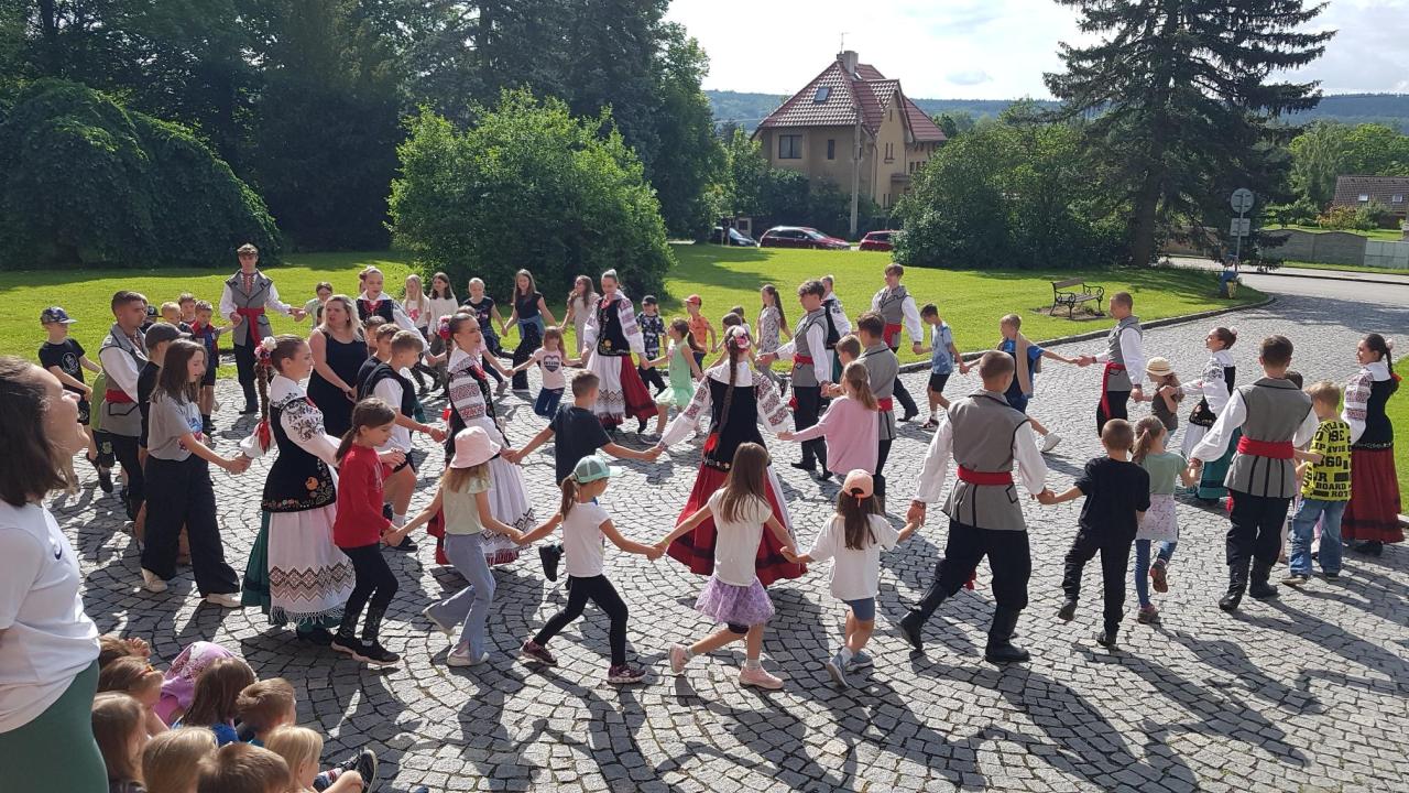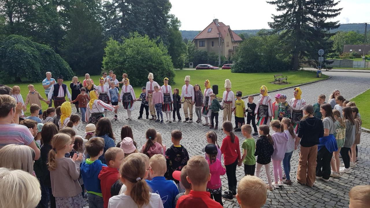 V průběhu červnového víkendu od 7. do 9.6. se v Plzni konal tradiční folklórní festival, kam se sjíždějí soubory nejen z celé Evropy. Naše škola byla v pátek poctěna návštěvou souborů ze Srbska a Polska. Unikátní ukázky hudby a tance v nádherných kostýmech jsme sledovali před školou rozděleni na dvě části – 1.stupeň a poté také 2.stupeň. V závěru každé ukázky se mohli všichni přihlížející do tance zapojit 😊. Atmosféra byla úžasná, počasí nádherné, jak je vidět z fotografií.