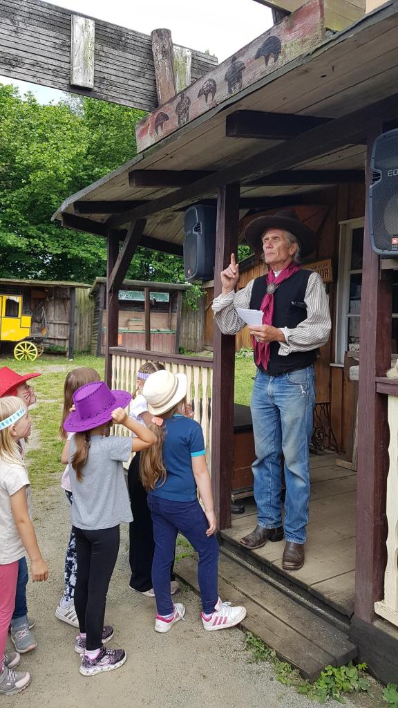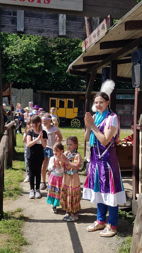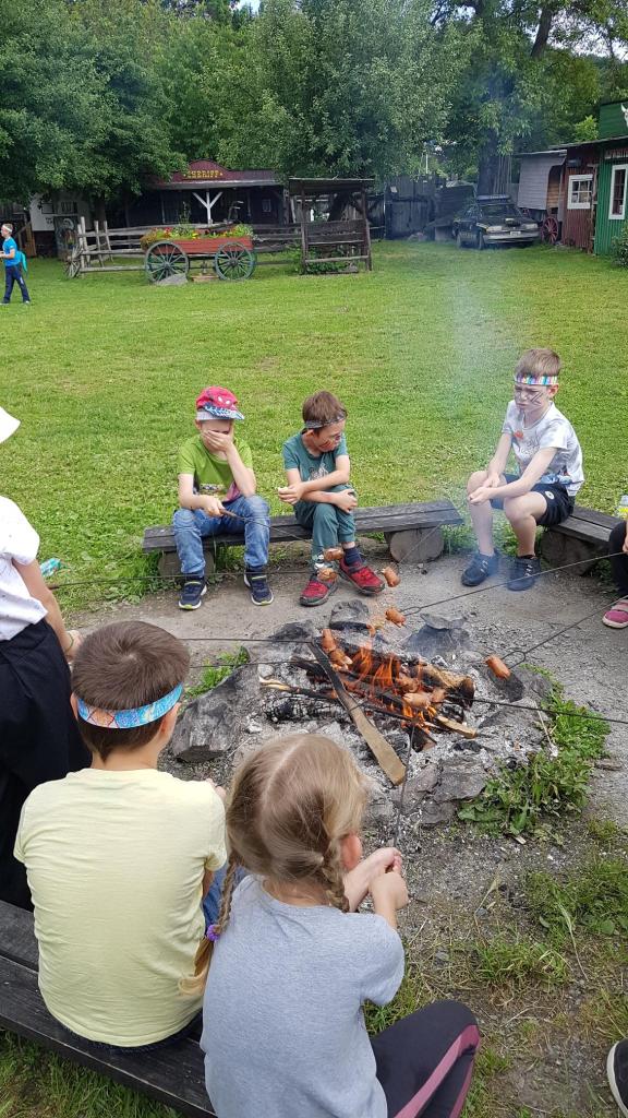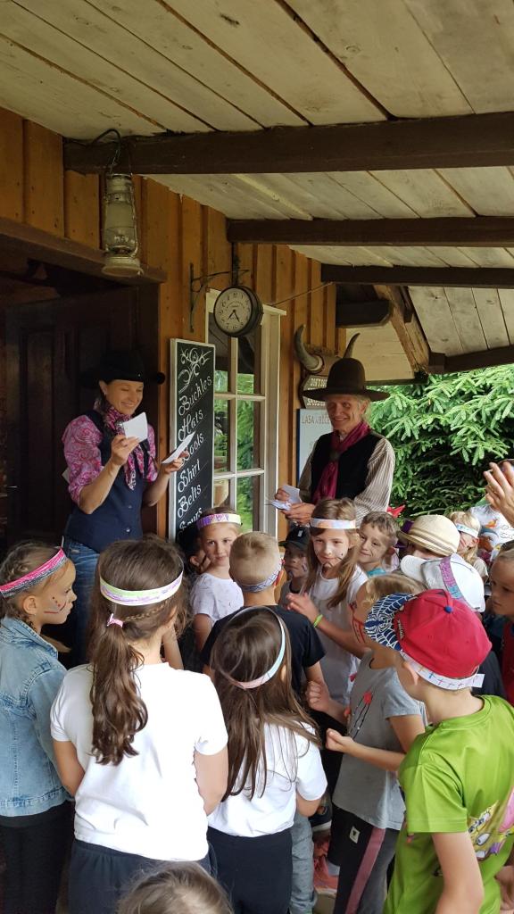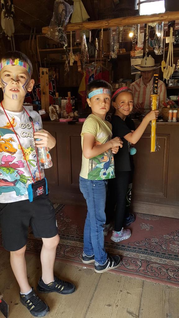 Na čtvrtek 6.6. jsme si naplánovali výlet do plzeňského Westparku. Vyrazili jsme společně s našimi parťáky z 1.A v 8.00 autobusem od budovy školy. Před samotným vstupem do westernového muzea jsme měli chvilku času, tak jsme hráli živé pexeso, abychom si ukrátili čas čekání. V 9.00 nás přivítal opravdický kovboj, seznámil nás s programem a zavedl do krásné společenské místnosti, kde mohly děti posvačit. Poté nás čekalo procházení různými aktivitami a prohlížení exponátů na téma Indiáni a kovbojové aneb jak to chodí na divokém západě. Děti si vyrobily indiánskou čelenku, nechaly si na obličej namalovat indiánské znaky a stali se z nich tak na celé dopoledne opravdoví Indiáni 😊. Děti házely podkovou a lasem, dozvěděly se, jak se rýžovalo zlato a také si to vyzkoušely. Vyrýžované zlato si, pokud jej nepoztrácely 😊, odvezly domů. Děti míčky lovily bizony, zkoušely sílu, prohlížely si indiánská i kovbojská obydlí či vozy. Součástí programu byla ukázka indiánských tanců, následně si děti zatančily všechny společně tanec přátelství. Obdivovaly přitom překrásné indiánské kostýmy všech aktérů. Pak následoval oběd – každý si opekl buřta a na děti čekalo ještě vystoupení s točením lasa. I to si mohli všichni poté vyzkoušet a šlo to velmi dobře. V průběhu dopoledne si děti mohly koupit nanuka, pití nebo nějakou sladkost v obchůdku s jídlem, popřípadě ve westernovém obchodě nakoupit nějaký suvenýr. Na závěr si děti zasoutěžily, měly tak možnost uplatnit, co se v průběhu dopoledne dozvěděly. Těsně předtím, než začalo pořádně pršet, jsme stihli nastoupit do autobusu a dorazit zpět ke škole. Všichni si westernové dopoledne náramně užili, ani nevíme, jak rychle to uteklo 😊.