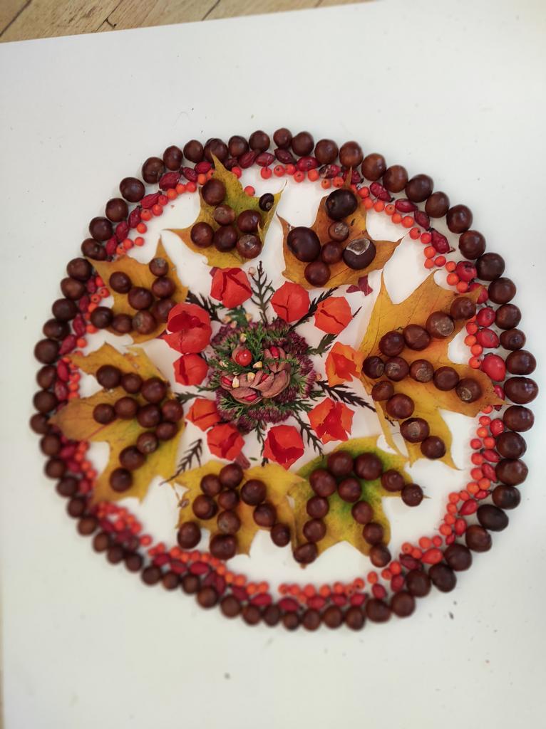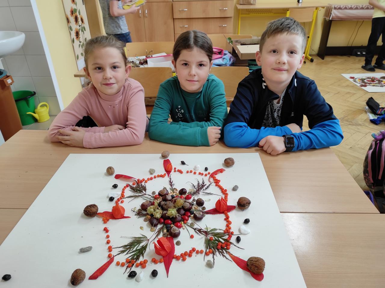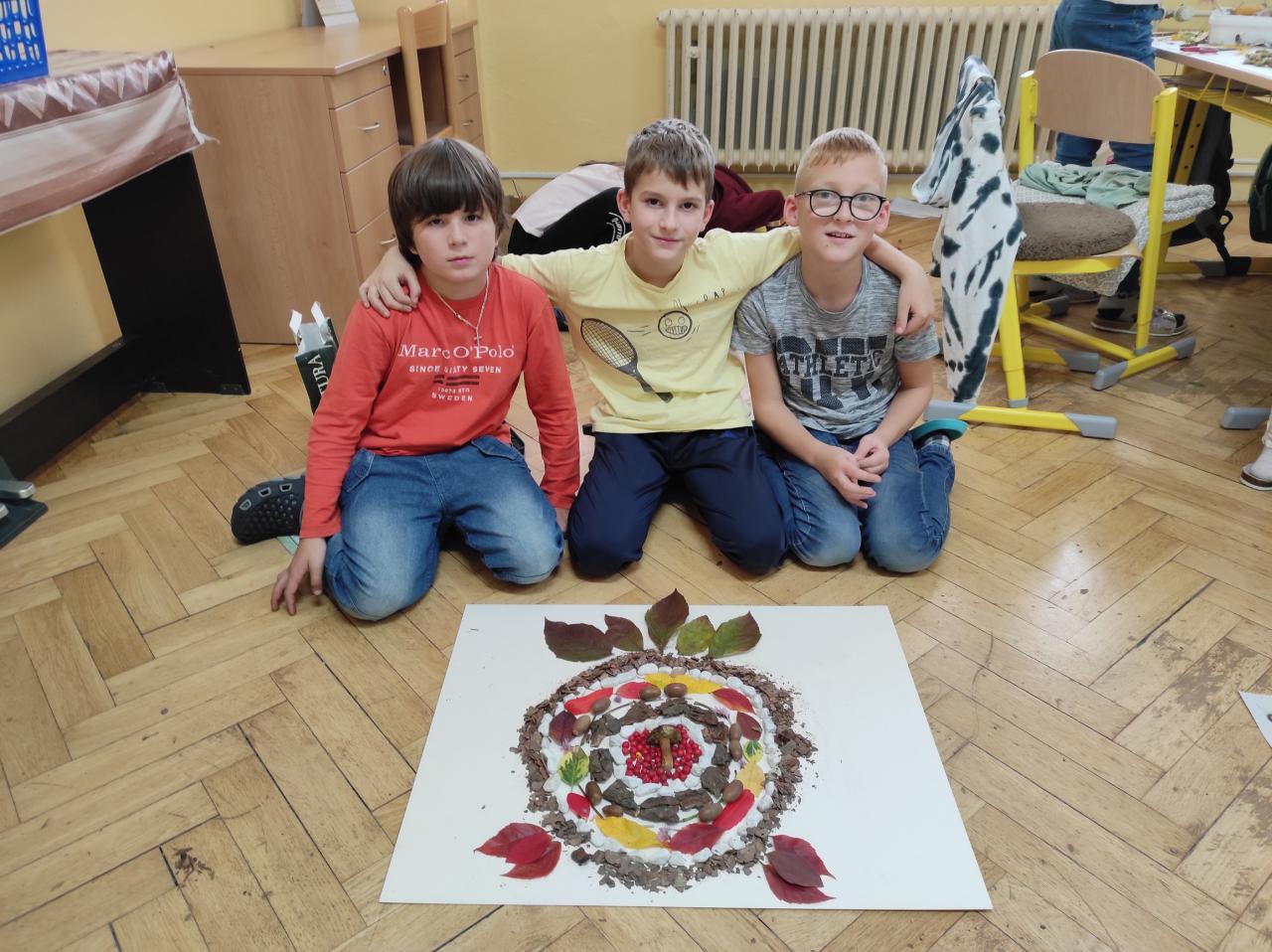 Už máte dost pošmourného a uplakaného počasí? Můžete s námi zavzpomínat na krásy barevného podzimu. Množství plodů a barevného listí nás inspirovalo k vytvoření podzimních mandal, které zdobily i naší školní chodbu. Děti pracovaly s nadšením a já jsem slíbila, že dám fotky nejen pro rodiče na stránky školy. Plním slib se zpožděním - konečně jsem si s tímto technickým oříškem poradila. Věřím, že potěší nejedno oko - třeťáci jsou totiž opravdu velmi šikovní.